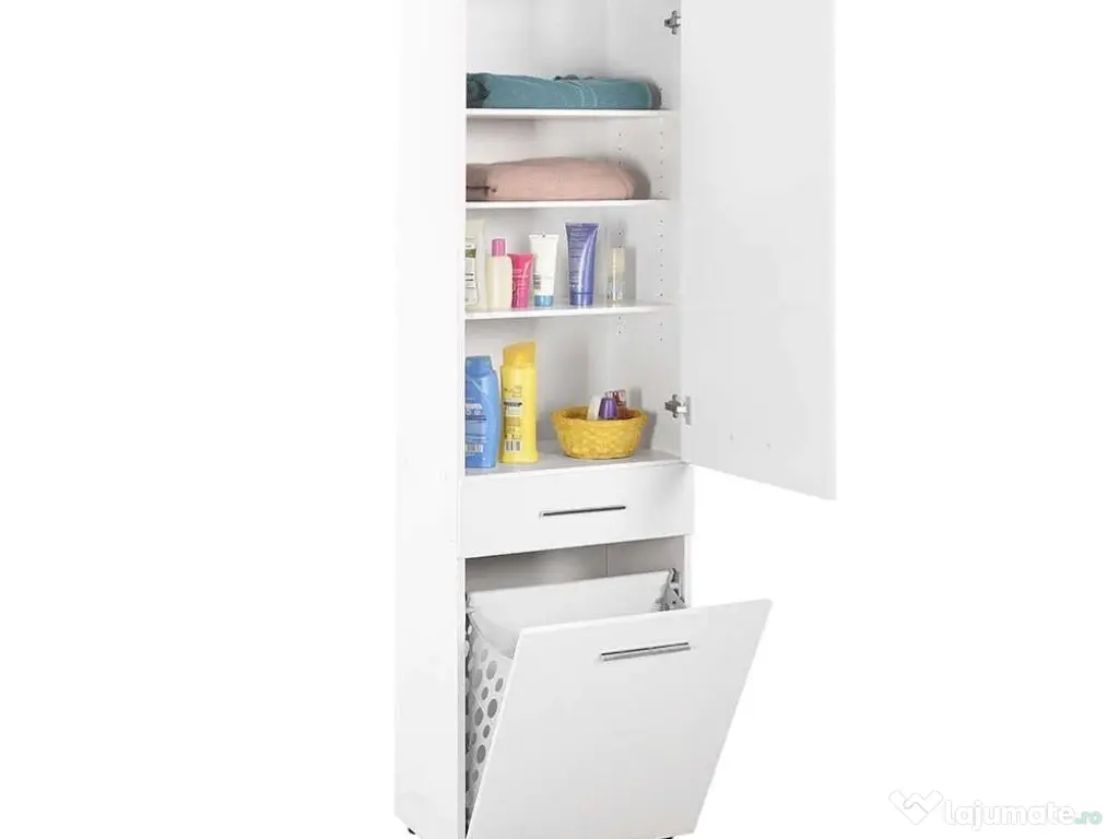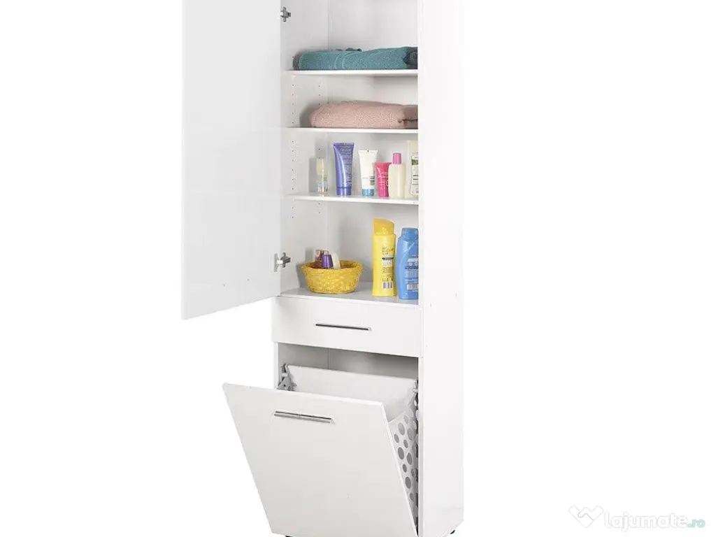 Dulap Baie cu cos de rufe Adore Diamond, Alb Lucios, 52 x 187 x 38 cm