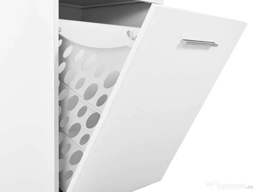 Descoperă dulapul de baie pe sol Adore Diamond! Cosul de rufe integrat face din dulapul Adore Diamond o piesa esentiala pentru organizarea spatiului tau de baie. Cu un finisaj alb lucios, va adauga un aer proaspăt și modern în încăperea ta.