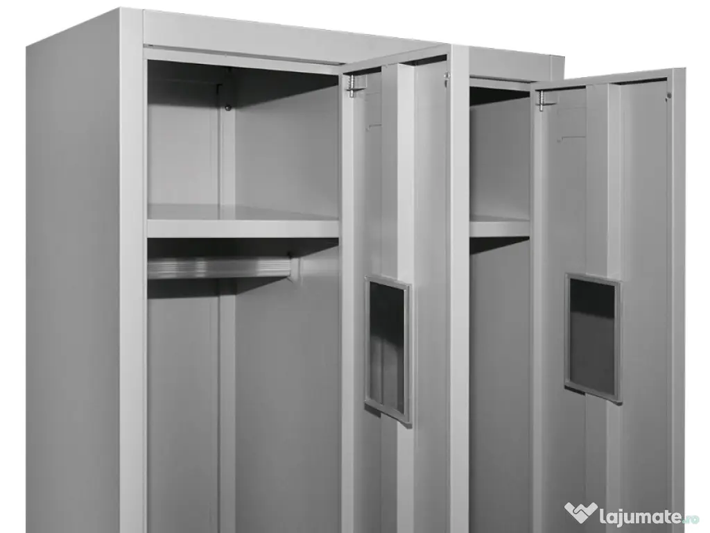 Dulap Fiset Dublu Vestiar Cabinet Depozitare Organizator Metalic Usi Securizate Gri 180x60x45 cm + LIVRARE GRATUITA
