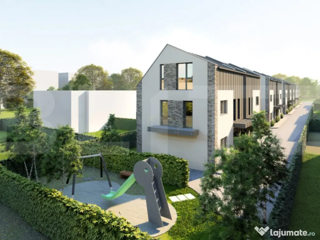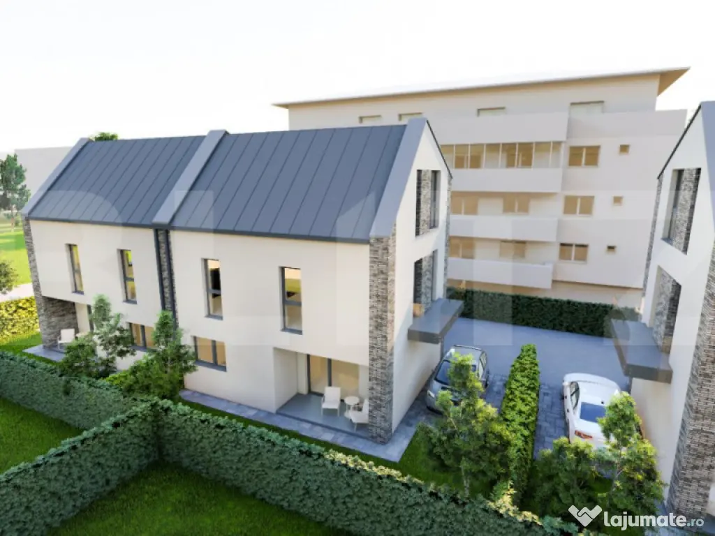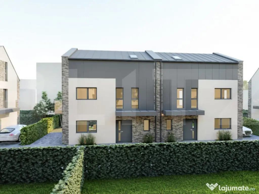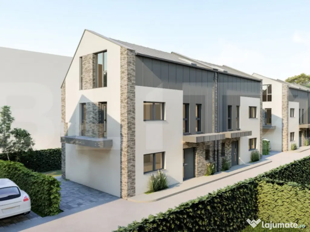 Blitz va propune spre vanzare 9 unitati de duplex intr-un ansamblu privat cu bariera si parc de joaca, din zona strazii Catanelor. Imobilele sunt constructie noua, racordate la toate utilitatile, cu finisaje de foarte buna calitate, stalpi beton armat; pereti exteriori : zidarie caramida 25 cm, sistem termoizolant, polistiren expandat EPS 150 mm, placaj caramida aparenta, tencuiala+glet+zugraveala; piatra naturala pe fatada, acoperis tabla Bilka, sistem fluvial, tamplarie Salamander, incalzire in pardoseala cu centrala proprie pe gaz Immergas, colectare apa de ploaie in camine individuale, fundatie adanca intre 2,10m-1,60m. Totodata dispune si de instalatie pentru montare panuri fotovoltaice si priza pentru incarcare masini electrice. Imobilele se predau la stadiul de semifinisat, cu o mana de glet, iar la cerere se pot finisa contracost punandu-se designer la dispozitie pentru alegerea finisajelor si dessing-ului. Casa este situata pe 3 nivele: P + E+M , in suprafata de 119.82mp cu o gradina de 70.50mp si un loc de parcare in lateralul casei care se poate amenaja in 2 locuri daca se doreste. Casa este compatimentata astfel: Parter - hol acces, spatiu pentru depozitare sub casa scarii, baie, living + bucatarie si terasa de 4.59mp Etaj - hol, 2 dormitoare (unul din ele fiind master bedroom avand un dressing spatios si baie proprie), un balcon cu acces din ambele dormitoare, 2 bai Mansarda - hol, dormitor, baie cu velux si un spatiu de depozitare generos de 11.90mp Pretul nu include TVA !! Pentru mai multe informatii se poate pune la dispozitie jurnal foto din perioada constructiei si proiect tehnic! Pentru mai multe informatii va asteptam la vizionare si nu o sa fiti dezamagiti! Cod ofertă / ID BLITZ: P144439 Id intern: P144439 Număr niveluri imobil: 2 Număr Băi: 4 Nr. locuri parcare: 1 Curent Apă Canalizare Gaz