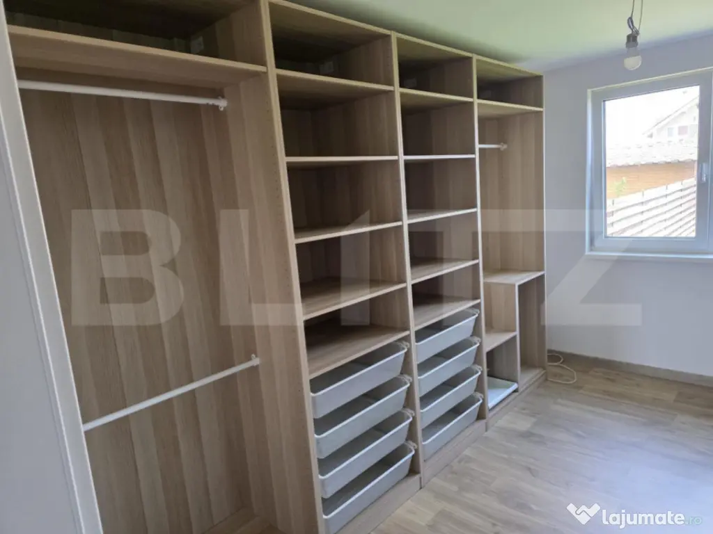 BLITZ vă propune spre vânzare un duplex modern, complet mobilat, cu suprafața utilă de 92 mp și teren de 300 mp, ideal pentru confort și funcționalitate, aproape de magazine. Parterul include living open-space cu bucătărie, birou și baie, cu acces la terasa exterioară. Etajul are două dormitoare și o baie complet utilată. Proprietatea se află la 5 minute de Magazine și 2 minute de stația de autobuz, cu acces rapid către oraș. Vă invităm la vizionare pentru a descoperi această locuință pregătită pentru mutare. Cod ofertă / ID BLITZ: P165308 Id intern: P165308 Număr niveluri imobil: 1 Număr Băi: 2 Curent Apă Gaz Sistem irigaţie Climă