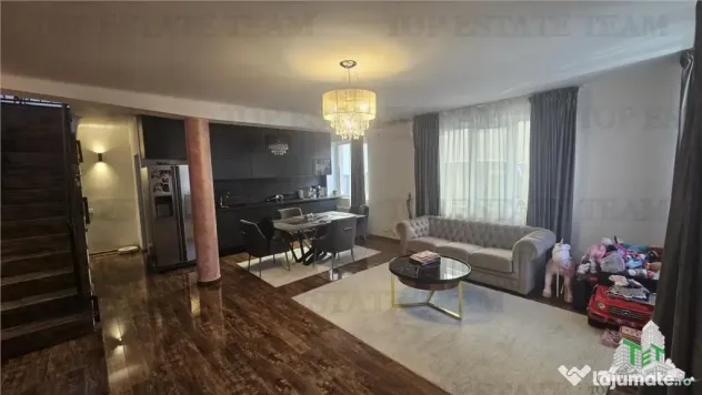 Va propunem la vanzare un duplex cu 4 camere (dormitor pe parter) mobilat/utilat lux in localitatea Rosu (Chiajna) - la 5 minute de sectorul 6.