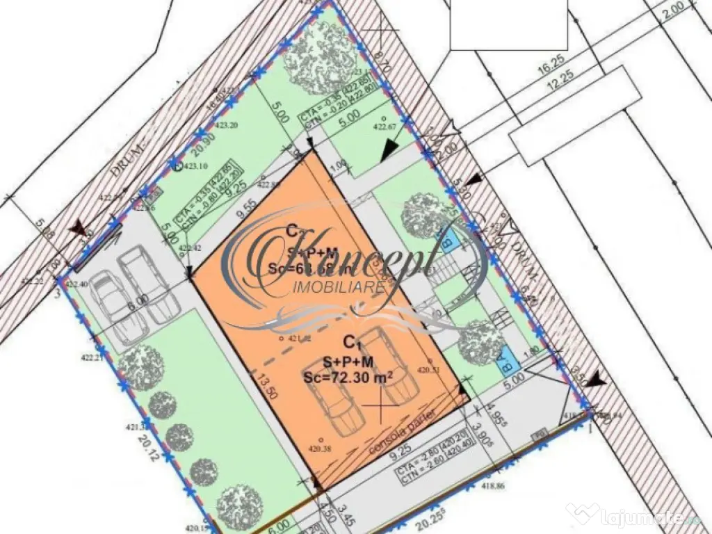 Koncept Imobiliare va ofera spre vanzare o parte de duplex situata in cartierul Dambul Rotund. Imobilul amplasat pe un teren in suprafata de 280 mp, este dispus pe 3 niveluri, in suprafata de 156 mp utili, avand urmatoarea compartimentare: - demisol: un garaj generos pentru 2 masini; - parter: hol, living, bucatarie si o baie; - etaj: hol, 3 dormitoare si 1 baie. Casa este construita cu materiale de foarte buna calitate, la interior se preda cu peretii in lavabil alb, sapa autonivelanta, incalzire prin pardoseala, centrala termica proprie, ferestre cu 3 foi de sticla, iar la exterior se preda finisat si amenajat cu pavaj atat pentru calea de acces auto, cat si pentru cea pietonala, usi la garaj, porti auto cu automatizare si teren imprejmuit. Datorita zonei linistite, a suprafetei generoase, cat si pentru panorama deosebita, se recomanda acest imobil pentru o familie care doreste sa aiba parte de confort, intimitate si acces facil catre gradinite, scoli si alte puncte de interes. Pentru informatii suplimentare, programarea unei vizionari sau pentru a va prezenta oferta noastra completa, nu ezitati sa ne contactati telefonic, prin e-mail sau la sediul agentiei noastre de pe str. Aviator Badescu nr. 19, Cluj-Napoca. Id intern: P20371 Număr niveluri imobil: 1 Număr Băi: 2 Nr. locuri parcare: 2 Curent Apă Canalizare Gaz