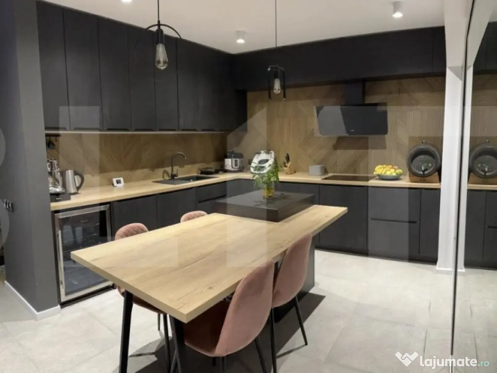 Blitz va propune un duplex mobilat si utilat lux din 2022, situat in cartierul Manastur. Orientarea estica a imobilului ii confera o priveliste deosebita asupra orasului. Este dispus pe D+P+E astfel : -La demisol avem livingul generos, o baie de servici si terasa de 30 mp. -La parter gasim un hol, sala de sport, bucataria si accesul la a doua terasa de 20 mp. -La Etaj avem 3 dormitoare, 2 bai si 1 balcon de 10 mp. Dormitorul matrimonial dispune de baie proprie. Totodata casa pune la dispozitie 2 locuri de parcare exterioare. Casa se preda complet mobilata si utilata modern, dispune de o suprafata utila de 120 mp, iar suprafata gradinii este de 291 m2. Gradina este frumos amenajata, ofera intimitate si un aer de vacanta. Cu siguranta va veti simti incantati pe tot parcursul sederii! Pentru a afla mai multe detalii sau pentru a stabili o vizita, apelati-ne cu incredere. Merita toata atentia dvs. ! Cod ofertă / ID BLITZ: P2772 Id intern: P2772 Număr niveluri imobil: 1 Număr Băi: 4 Nr. locuri parcare: 2