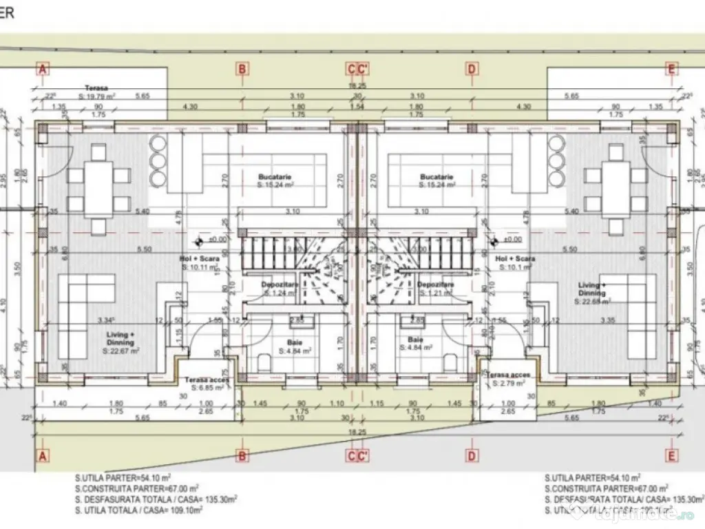 Blitz vinde duplex cu 4 camere, pozitionat in Gilau, pe o strada privata. Duplexul este constructie de caramida, cu acoperis din tigla si are un regim de inaltime P+E. Suprafata utila este de 100 mp, iar suprafata aferenta de teren este de 250 mp si un front stradal de 14 ml. Compartimentarea se prezinta astfel: -parter: hol acces, bucatarie + living, hol, debara si o baie. -Etaj: trei dormitoare, hol, o baie si un balcon. Se vinde la stadiul de semifinisat, cu sapa autonivelanta si instalatii trase la pozitie, peretii gletuiti, incalzire in pardoseala la parter, calorifere la etaj, geamuri termopan cu tamplarie PVC. si centrala termica. Curtea se preda imprejmuita si delimitata cu gard din tabla si gard din scandura fata de vecini. Va fi amenajat un loc de parcare. Podul se poate utiliza ca si spatiu pentru depozitare. Termen de finalizare aprilie 2026, iar pretul este final si contine TVA. Cod ofertă / ID BLITZ: P3000 Id intern: P3000 Număr niveluri imobil: 1 Număr Băi: 2 Nr. locuri parcare: 1