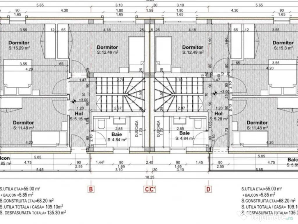 Duplex de vanzare, 100 mp, 250 teren, semifinisat, P+E, Gila