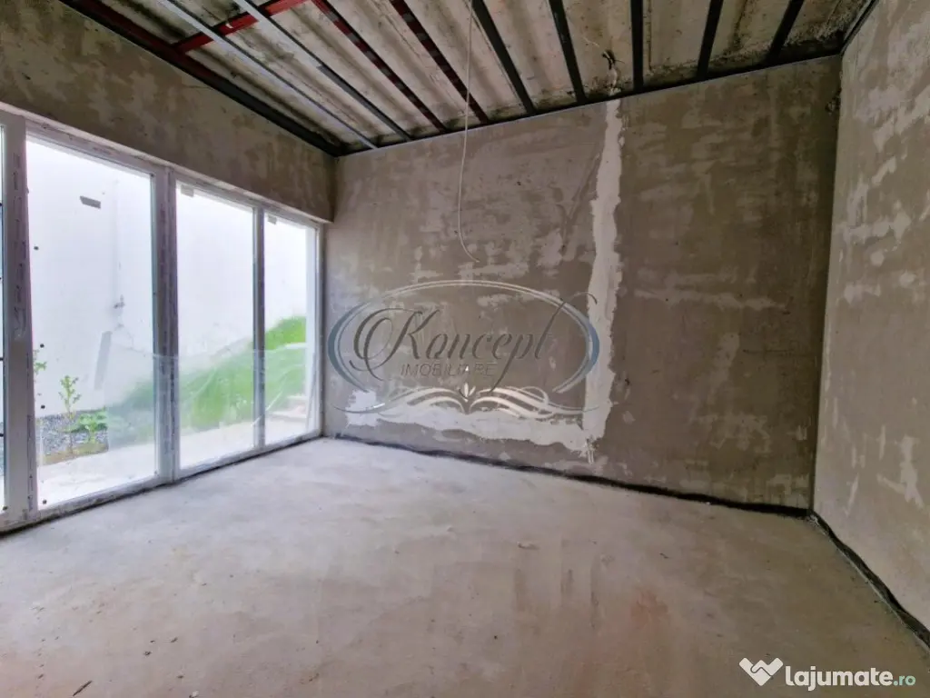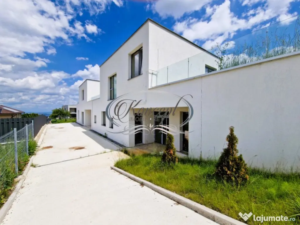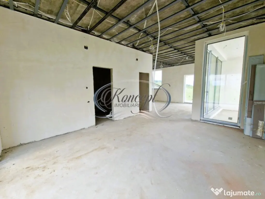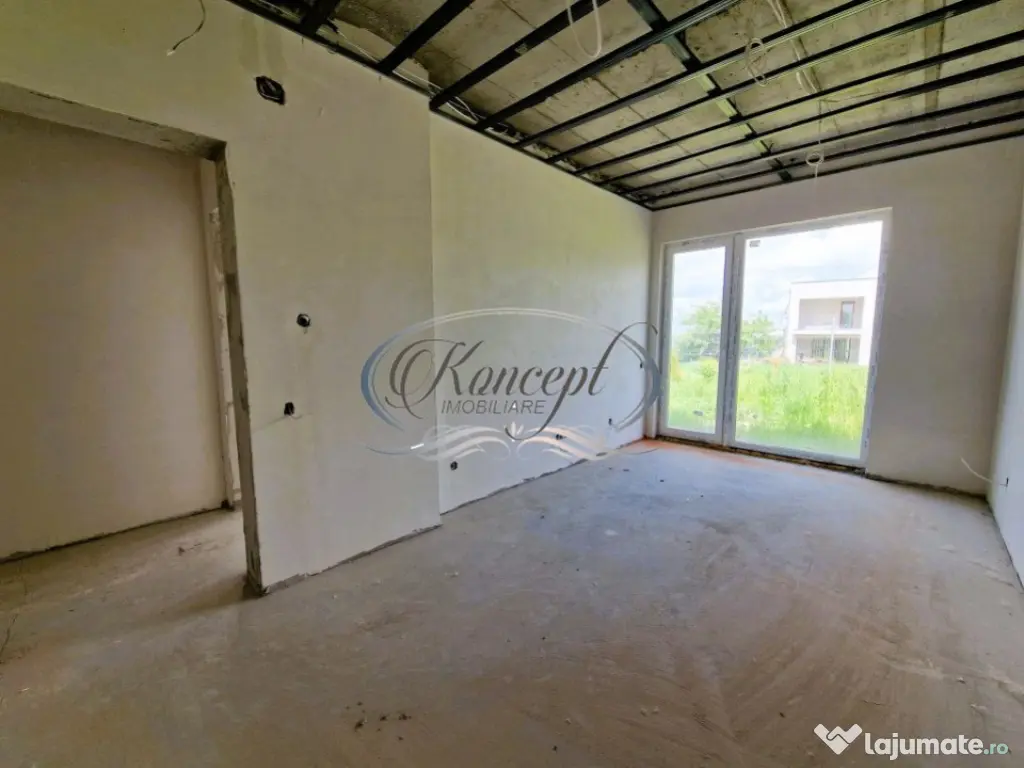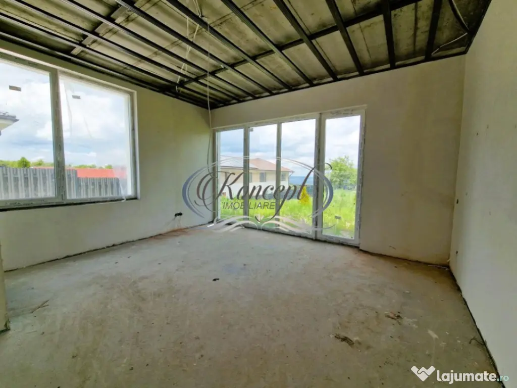Koncept Imobiliare va ofera spre vanzare o casa de tip Duplex, in imediata apropiere de Wonderland. Casa are suprafata utila de 158 mp si teren aferent de 499 mp, este dispusa pe 2 niveluri (P+1), fiind compartimentata dupa cum urmeaza: Parter - dormitor matrimonial cu baie proprie, 2 dormitoare, dressing walk-in, baie, casa scarii, spalator, spatiu depozitare; Etaj - living spatios, bucatarie cu loc de luat masa, camara pentru alimente, baie si terasa. Acesta se vinde la stadiul de semifinisat in interior, prevazut cu pereti gletuiti, sapa, centrala termica cu incalzire prin pardoseala, geamuri termopan cu 3 foi de sticla, toate instalatiile trase pe pozitie, iar exteriorul finisat. Imobilul dispune de CF, iar vanzarea se va face de pe persoana fizica, neimplicand costuri suplimentare de TVA. Datorita zonei si compartimentarii, casa se preteaza pentru o familie care doreste sa se bucure de linistea si privelistea oferite de zona. Pentru informatii suplimentare, programarea unei vizionari sau pentru a afla oferta noastra completa, nu ezitati sa ne contactati telefonic, prin e-mail sau la sediul agentiei noastre de pe str. Aviator Badescu nr. 19, Cluj-Napoca. Id intern: P19414 Număr niveluri imobil: 1 Număr Băi: 3 Nr. locuri parcare: 2 Curent Apă Canalizare Gaz
