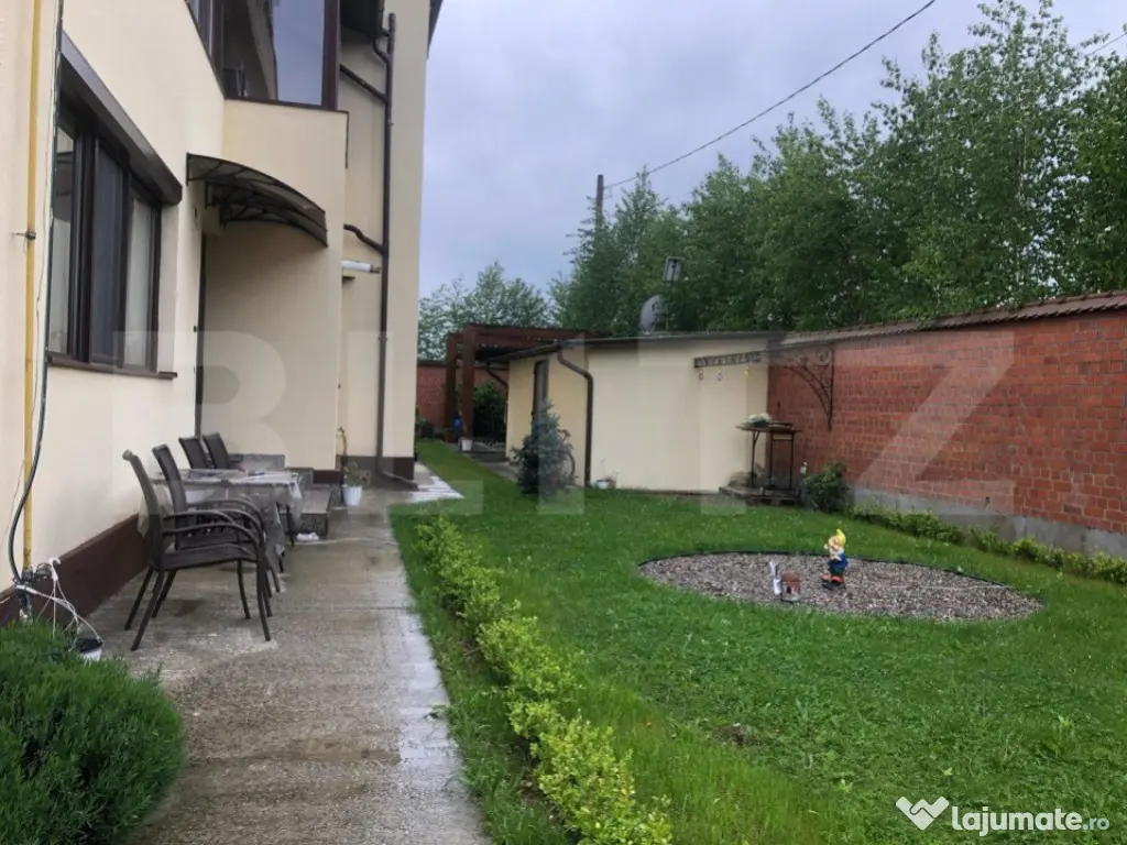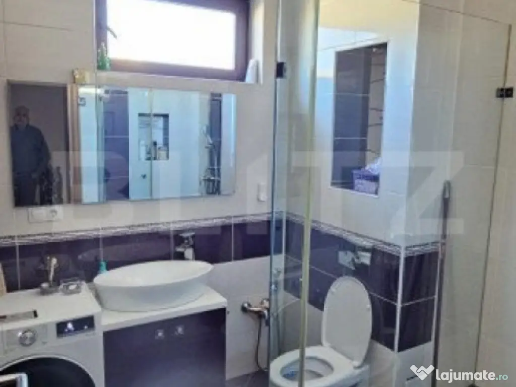 Blitz va propune spre vanzare un apartament cu 4 camere decomandat situat intr-un cartier rezidential linistit cu drum privat. Acesta se afla pozitionat la parterul unei vile cu etaj construite in anul 2012 . Proprietatea masoara o suprafata utila de 111,25 mp si este compartimentat astfel: living generos amenajat cu semineu electric si cu bucatarie open space cu zona de luat masa, baie spatioasa cu cabina de dus , scara interioasa de stejar si balustarda moderna . La etaj avem 2 dormitoare spatioase cu dresing individual , ambele cu iesire pe balcon, o baie cu cabina de dus . De asemenea, imobilul dispune de centrala termica, incalzire prin pardoseala, geamuri termopan,cu jaluzele, usa din lemn masiv de stejar la intrare si un spatiu de depozitare sub scara interioara. In incinta proprietatii se afla o curte proprie de aprozimativ 100 mp amenajata cu spatiu verde ,pomisori, loc de piscina pentru copii, de asemenea exista si un spatiu comun destinat recrearii care beneficiaza de un foisor si un gratar, parcare comuna cu poarta electrica . Apartamentul se va preda mobilat partial si complet utilat cu electrocasnice de ultima generatie. Nu ezitati sa programati o vizionare. Cod ofertă / ID BLITZ: P135888 Id intern: P135888 Confort: 1 Tip imobil: Casă/Vilă Număr Băi: 2 Nr. locuri parcare: 1