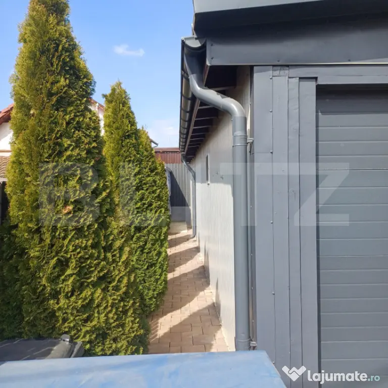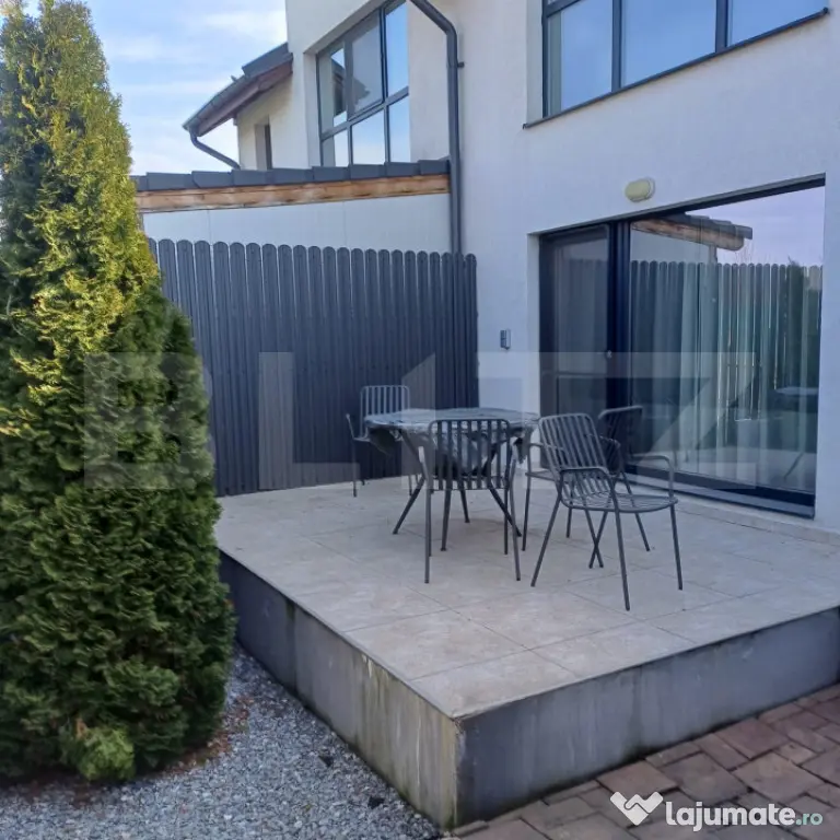 Curtea este amenajată, oferind un spațiu intim pentru relaxare, iar terasa reprezintă locul ideal pentru petrecerea timpului liber.