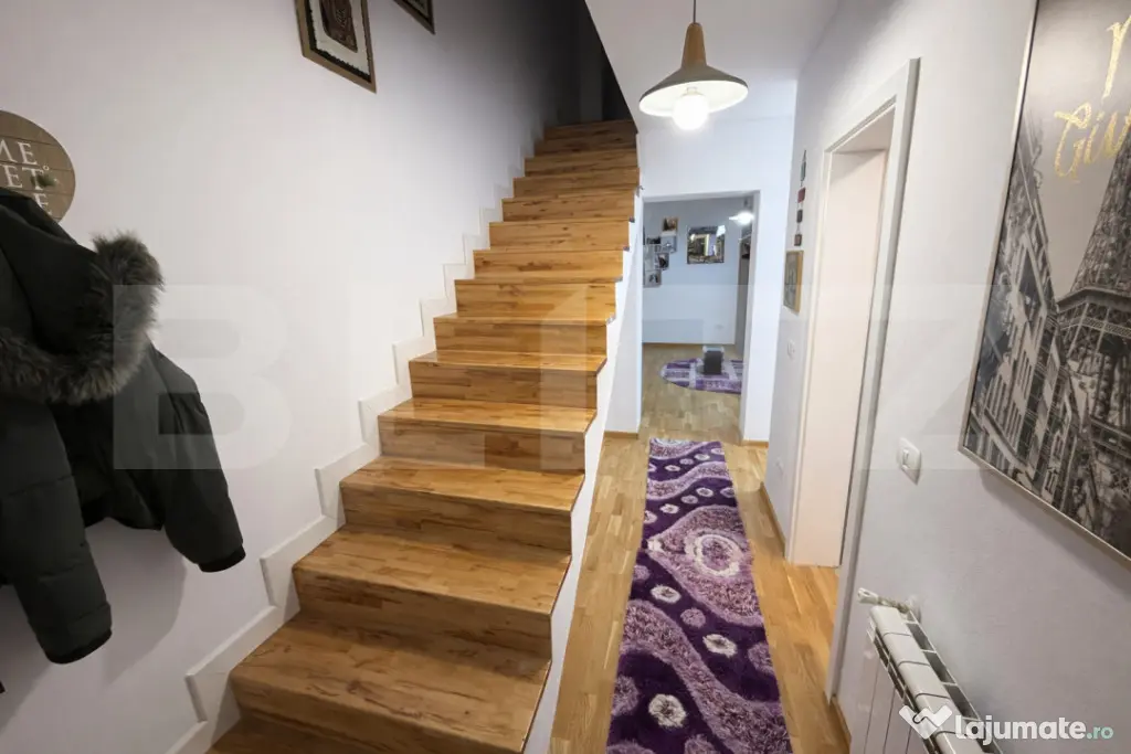 Imobilul dispune de o suprafață utilă de 130 mp și este amplasat pe un teren de 220 mp, având în plus un garaj de 13 mp și o terasă perfectă pentru relaxare.