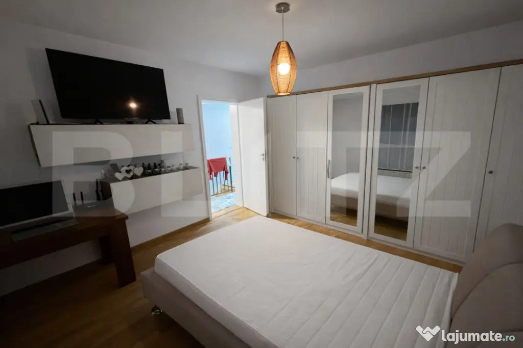 Locuința este compartimentată eficient, oferind spații generoase și luminoase, iar finisajele moderne și designul aerisit creează un ambient plăcut și funcțional.