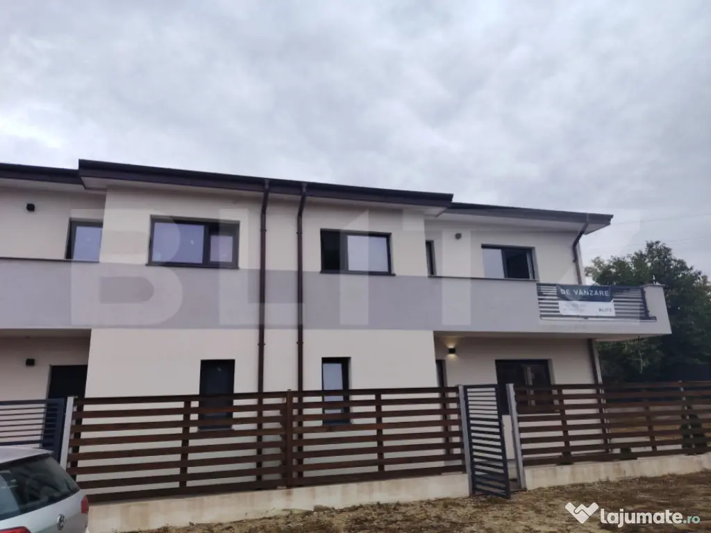 BLITZ va propune spre vanzare o casa deosebita P + M, 140 mp utili, situată pe un teren de 364 mp, parte dintr-un duplex, in Malu Mare, cu deschidere de 13 m la aleea privata, care permite accesul până la proprietate. Casa este construita din BCA, izolatie la exterior de 10 cm, cu acoperis din tabla, termopane tripan și se va preda la cheie. Compartimentarea este bine gandita: * la parter regasim un living generos open space cu bucătărie si iesire spre terasa, o baie, dar și o cameră tehnica (accesibilă din exterior) * la etaj regăsim 3 dormitoare ( doua dintre ele dispun de balcon ) și o a doua baie. Ca si utilități, proprietatea dispune de curent electric, apă curentă si canalizare. Partea din dreapta a acestui duplex este vandut deja unei familii de tineri, iar pentru cealaltă parte, care nu este încă finalizata, exista optiunea prin care viitorul proprietar isi poate alege materialele pentru finisajul interior și terasa ( gresie, faianta, parchet ). Pentru mai multe detalii, va asteptam sa programam o vizionare in aceasta locație! Cod ofertă / ID BLITZ: P154032 Id intern: P154032 Număr Băi: 2 Nr. locuri parcare: 2 Curent Apă Gaz