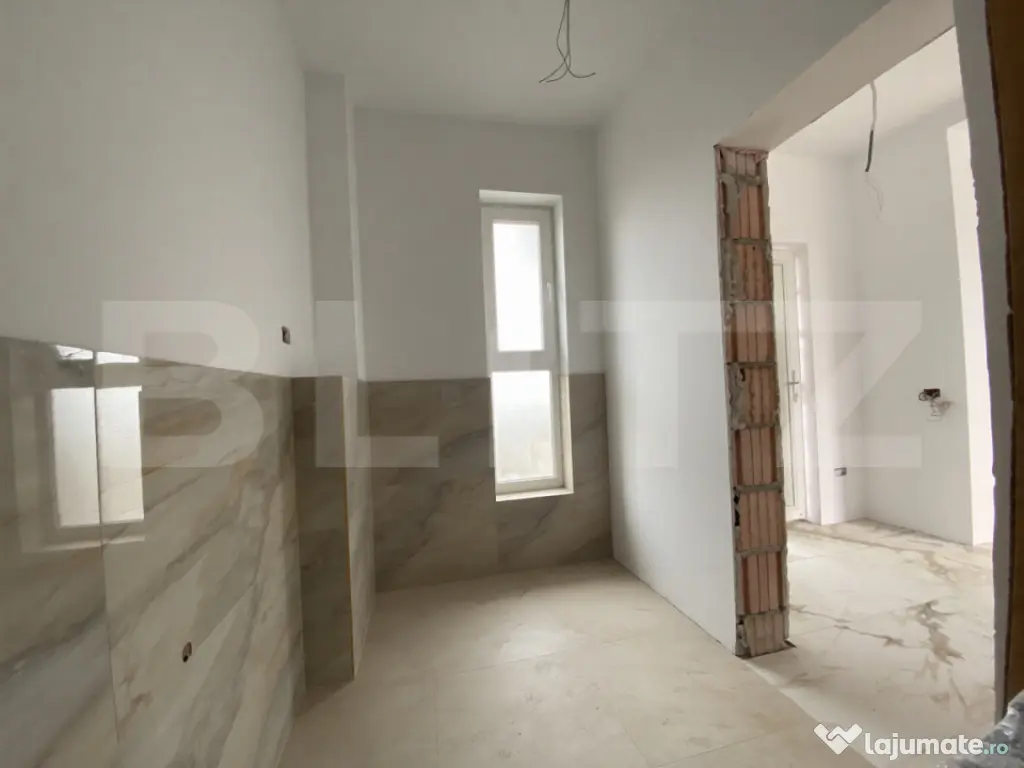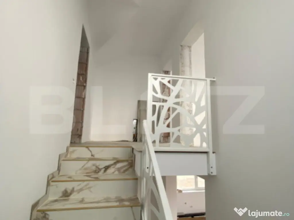 BLITZ va propune spre vânzare un duplex luminos, situat în Moșnița Nouă, în cartierul nou de la ieșirea din Urseni, într-o zonă liniștită și în plină dezvoltare. Locuința are o suprafață utilă de 95 mp și dispune de ferestre mari cu geam tripan, asigurând lumină naturală și un confort termic ridicat. Construcția este realizată cu materiale și finisaje de calitate superioara, iar separarea față de unitatea alăturată se face doar prin băi, beneficiind de izolație fonică superioară, cu cărămidă specială cu vată incorporată. Terenul aferent are 337 mp și oferă spațiu suficient pentru relaxare și activități în aer liber. Compartimentarea este eficientă: • Parter se află: livingul cu bucătărie open-space, baie cu duș, terasă si spațiu tehnic/birou cu acces de pe terasa • Etaj: două dormitoare spatioase, unul cu dressing, și baie cu cadă. Imobilul dispune de toate utilitățile (apă, fosă septică, curent, gaz) și se vinde la cheie, fiind pregătit pentru mutare imediată. Cod ofertă / ID BLITZ: P163046 Id intern: P163046 Număr niveluri imobil: 1 Număr Băi: 2 Curent Apă Gaz