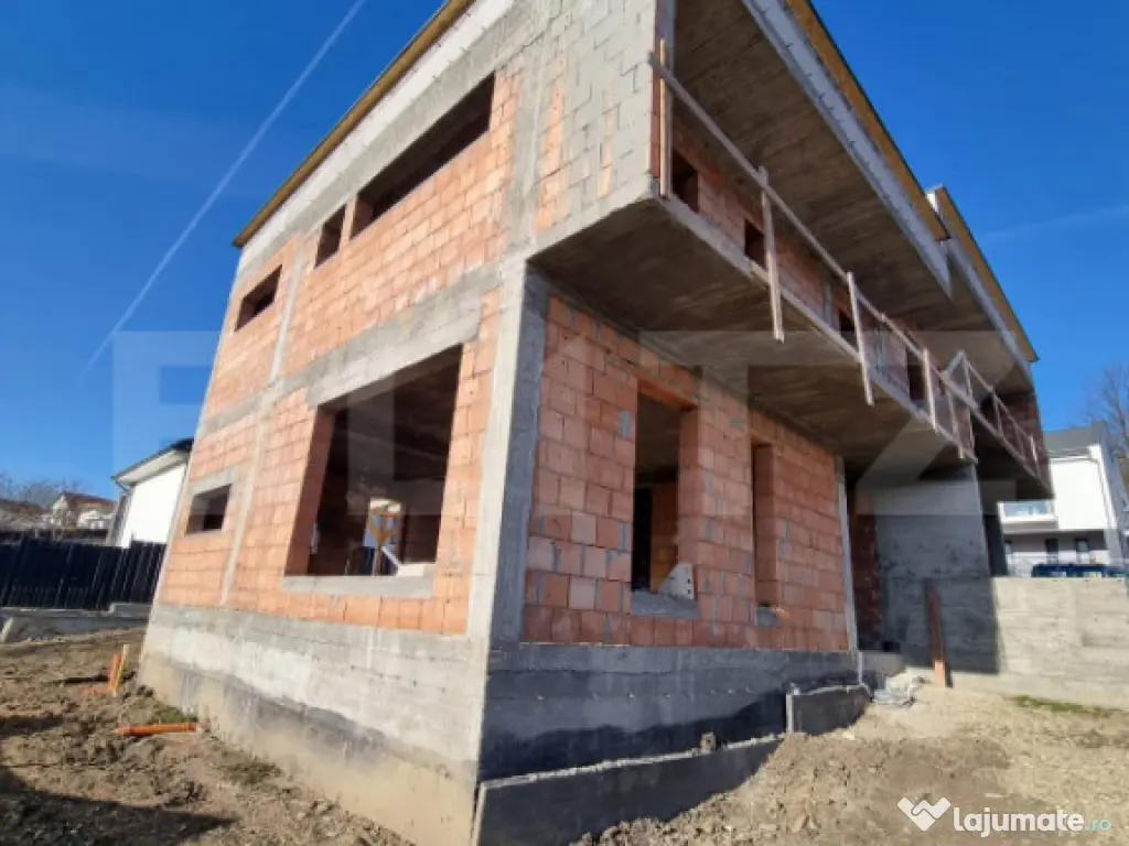 Blitz va prezinta un duplex modern, semifinisat, cu 135 mp utili și teren de 250 mp. Este locuința perfectă pentru o familie care își dorește confort, intimitate și siguranță. Curtea este deja pregătită pentru tine: pavaj, gazon verde, gard pe fundație de beton și poartă auto culisantă. Interiorul este generos și bine gândit – la parter te așteaptă un living spațios cu bucătărie open space și ieșire directă pe terasă, o baie și spațiul tehnic, iar la etaj vei găsi dormitorul matrimonial cu baie proprie, încă două camere luminoase și alte două băi. Construcția este solidă, pe structură de beton și zidărie de cărămidă, cu izolație exterioară și dotări de ultimă generație: centrală proprie, pompe de căldură, încălzire în pardoseală, geamuri tripan și ușă din aluminiu. Ai inclusiv curent trifazic, pregătit pentru toate nevoile moderne. Accesul este direct din drum asfaltat, la două minute de mers se află stația de autobuz, magazinele de cartier sunt aproape, iar centrul comercial Auchan este la doar cinci minute cu mașina. Toate acestea într-o zonă aerisită, liniștită și cu priveliște frumoasă. Dacă îți dorești o casă pe care să o transformi în “acasă”, cu spațiu pentru copii, pentru relaxare și pentru viitor, acest duplex din Iris poate fi exact ce cauți. Programează o vizionare și descoperă-l! Cod ofertă / ID BLITZ: P153689 Id intern: P153689 Număr niveluri imobil: 1 Număr Băi: 3 Nr. locuri parcare: 1 Curent Apă Canalizare Gaz