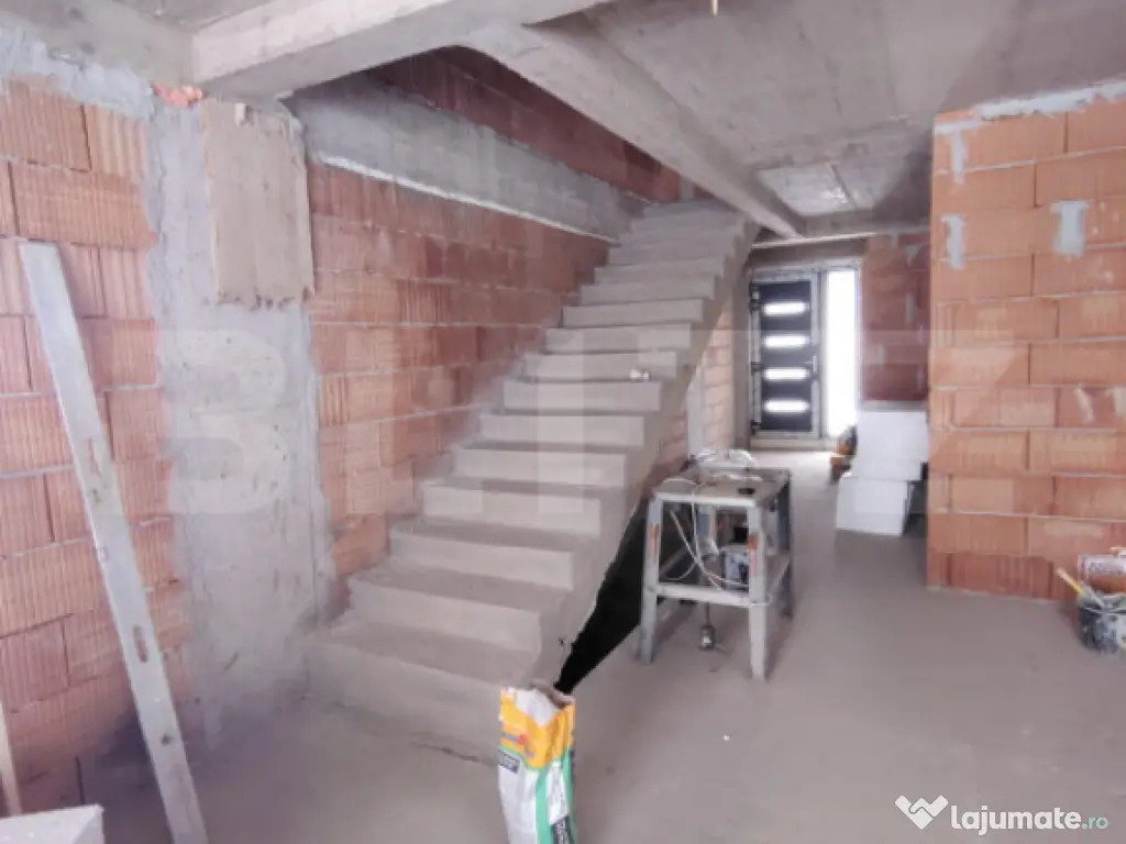BLITZ oferă spre vânzare două unități de locuit într-un duplex, zona cea mai dorită din cartierul Gheorgheni. Proiectul îmbină confortul designului arhitectural cu funcționalitatea modernă, fiind conceput pentru cei care își doresc confort superior într-o proprietate premium. Proprietatea dispune de o suprafață de 230 mp utili, cu suprafață liberă de curte și grădină de 150 mp, regimul de înălțime S+P+E+Etaj retras. Compartimentare atent gândită: Subsol (56 mp): scări sub care se află un spațiu mare ce poate fi folosit pentru depozitare, hol de acces, baie, spațiu pentru spălătorie/uscătorie, cameră tehnică 35 mp (spațiile sunt generoase si se poate regândi destinația lor); Parter: (73.75 mp): hol de acces, dressing, living spatios tip open-space cu bucătărie si dinning, baie, acces la o terasă generoasă, acces garaj; Etaj (65 mp): hol de acces, dormitor matrimonial cu dressing, baie proprie și logie, un dormitor secundar, 1 baie pe hol; Etaj retras (34 mp): 2 camere hobby, terasă panoramică. Detalii tehnice: zidarie din caramidă Porotherm de 25 cm, izolatie exterioară cu polistiren de 15 cm, geamuri tripan mari și luminoase, încălzire în pardoseală, centrală pe gaz, pereti finisati cu glet, instalatii sanitare si electrice pe pozitie, ușă metalică la intrare. Exterior: 1 garaj, 1 loc pentru parcare, grădină. Casa se predă la stadiul semifinisat, recepția se va face în 3-4 luni. Prețul listat este aferent unei unități locative și se adaugă TVA. Pentru mai multe detalii nu ezitati să ne contactați, vă așteptăm cu un interes aparte pentru a programa o vizionare și de a descoperi potențialul întregii proprietăți. Cod ofertă / ID BLITZ: P162523 Id intern: P162523 Număr niveluri imobil: 2 Număr Băi: 4 Nr. locuri parcare: 1 Curent Apă Canalizare Gaz