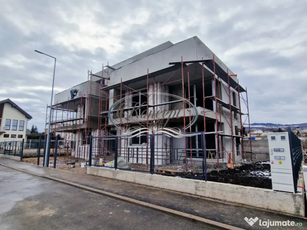 Koncept Imobiliare va propune spre vanzare o casa de tip Duplex Finisat, pe strada Mihai Romanu, cartierul Buna Ziua. Imobilul este dispus pe 3 niveluri, P+1+Er, au suprafata utila de 110 mp la care se adauga balcon si terasa rooftop, fiind compartimentat dupa cum urmeaza: parter - living, bucatarie cu loc de luat masa, casa scarii, baie si hol; Etaj: 2 dormitoare, balcon cu acces din ambele dormitoare, baie, hol; Etaj retras: dormitor, dressing, baie si terasa rooftop cu panorama deosibita asupra orasului. Imobilul se preda la stadiul de finisat complet ( gresie, faianta, parchet, usi, intrerupatoare, prize la alegere) si curtea amenajata. Datorita zonei, compartimentarii si a calitatii constructiei, casa se recomanda unei familii care isi doreste un stil de viata modern, intr-o zona linistita si exclusivista de case. Termenul estimat de finalizare este primavara anului 2026 si vanzarea se va face de pe persoana fizica, neimplicand costuri suplimentare de TVA. Pentru informatii suplimentare, programarea unei vizionari sau pentru a va prezenta oferta noastra completa, nu ezitati sa ne contactati telefonic, prin e-mail sau la sediul agentiei noastre de pe str. Aviator Badescu nr. 19, Cluj-Napoca. Id intern: P20515 Număr niveluri imobil: 2 Număr Băi: 3 Nr. locuri parcare: 2 Curent Apă Canalizare Gaz