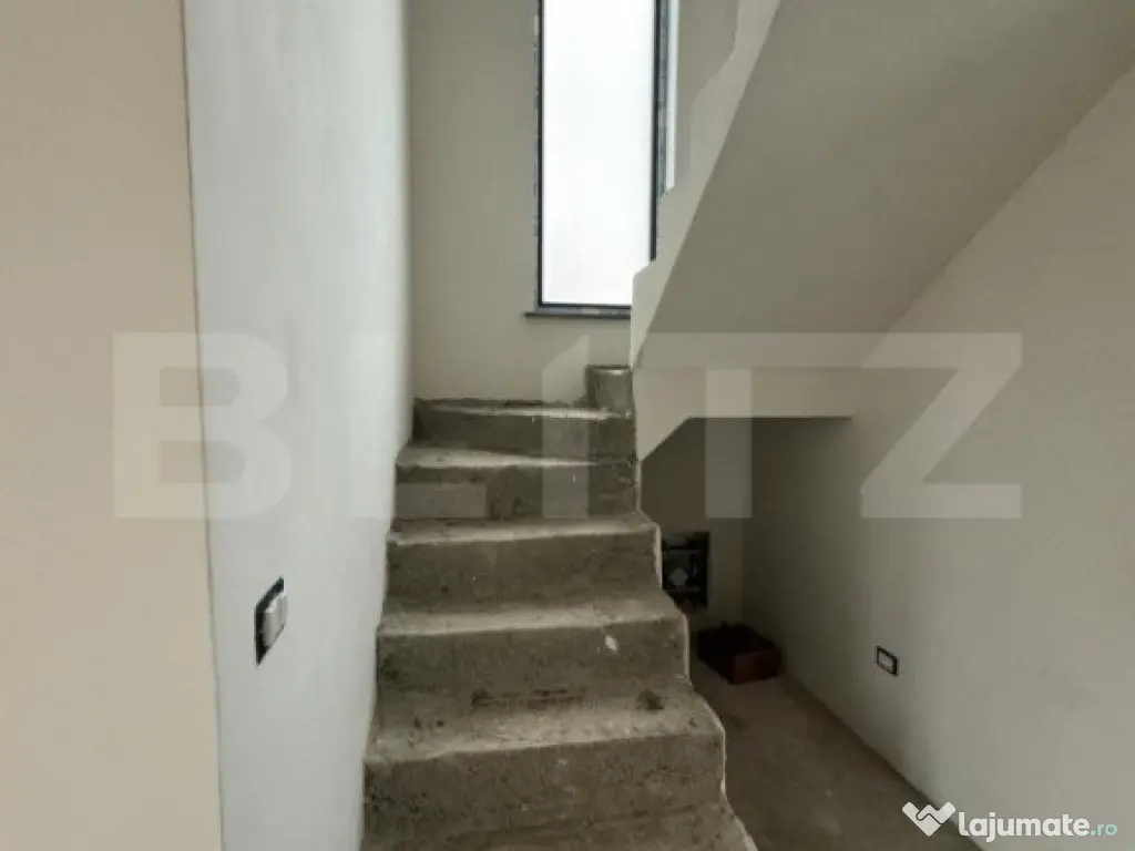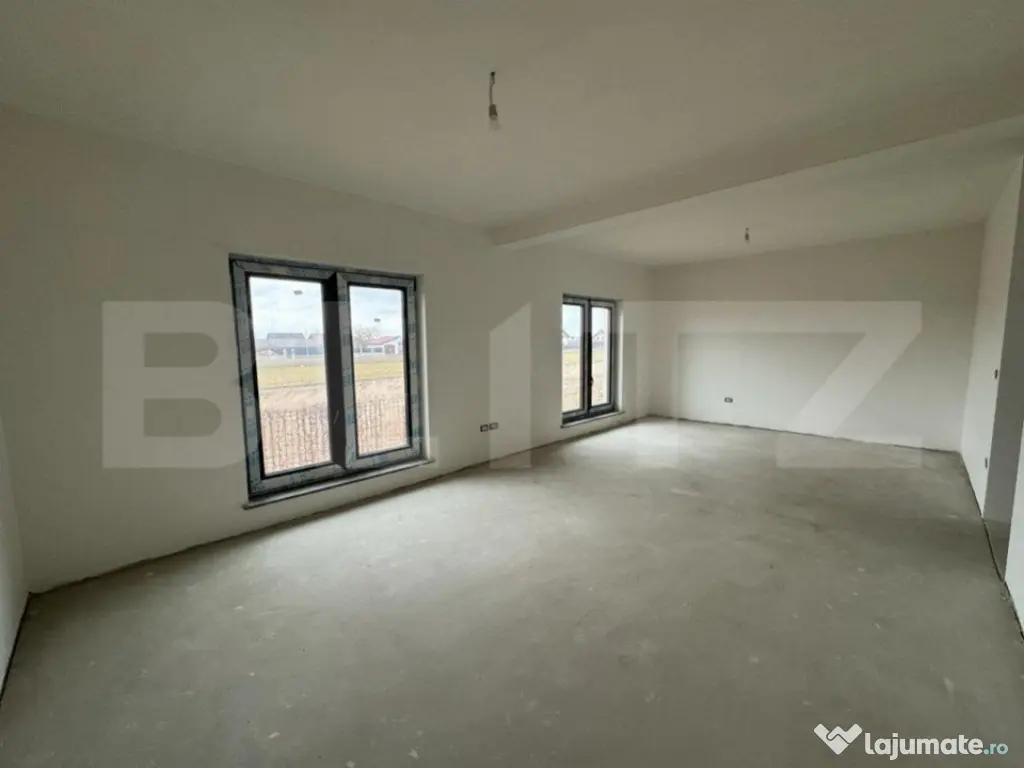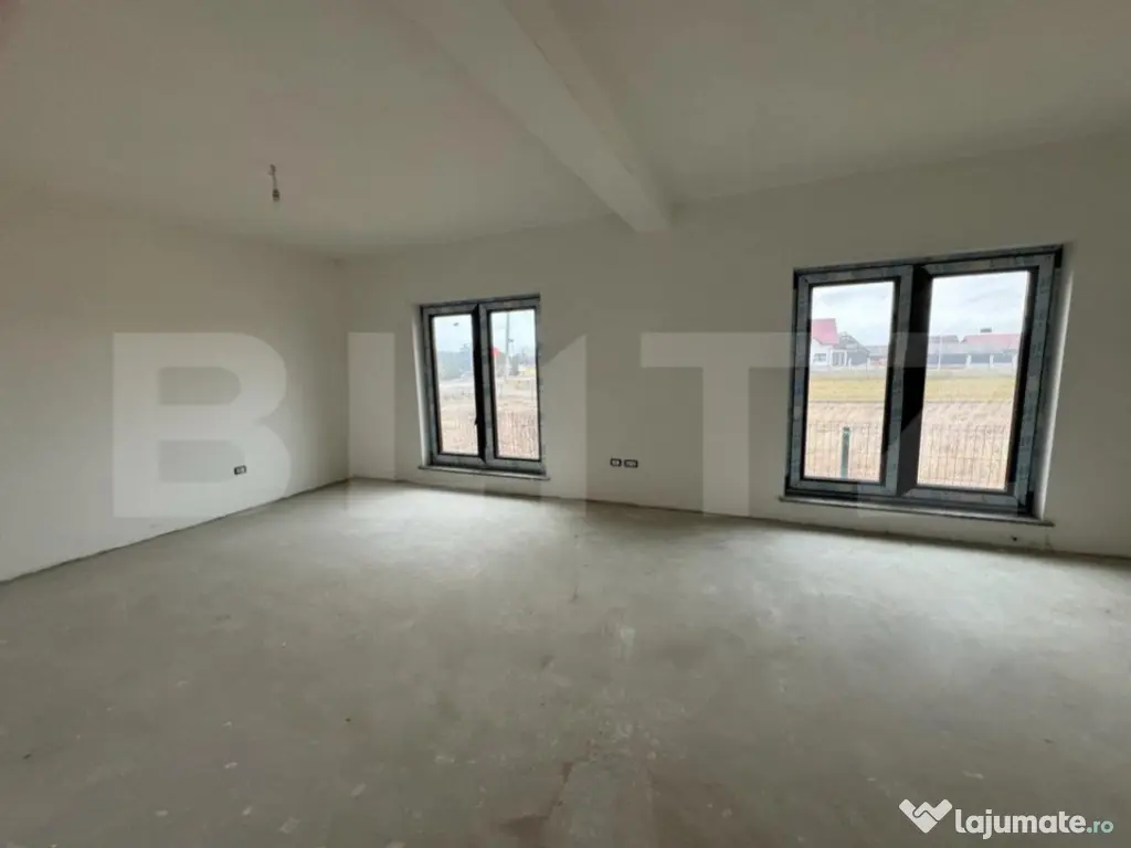 Acesta proprietate cu două niveluri oferă un design modern și funcțional, perfect pentru o familie sau chiar pentru cei care doresc să aibă propria lor locuință spațioasă.