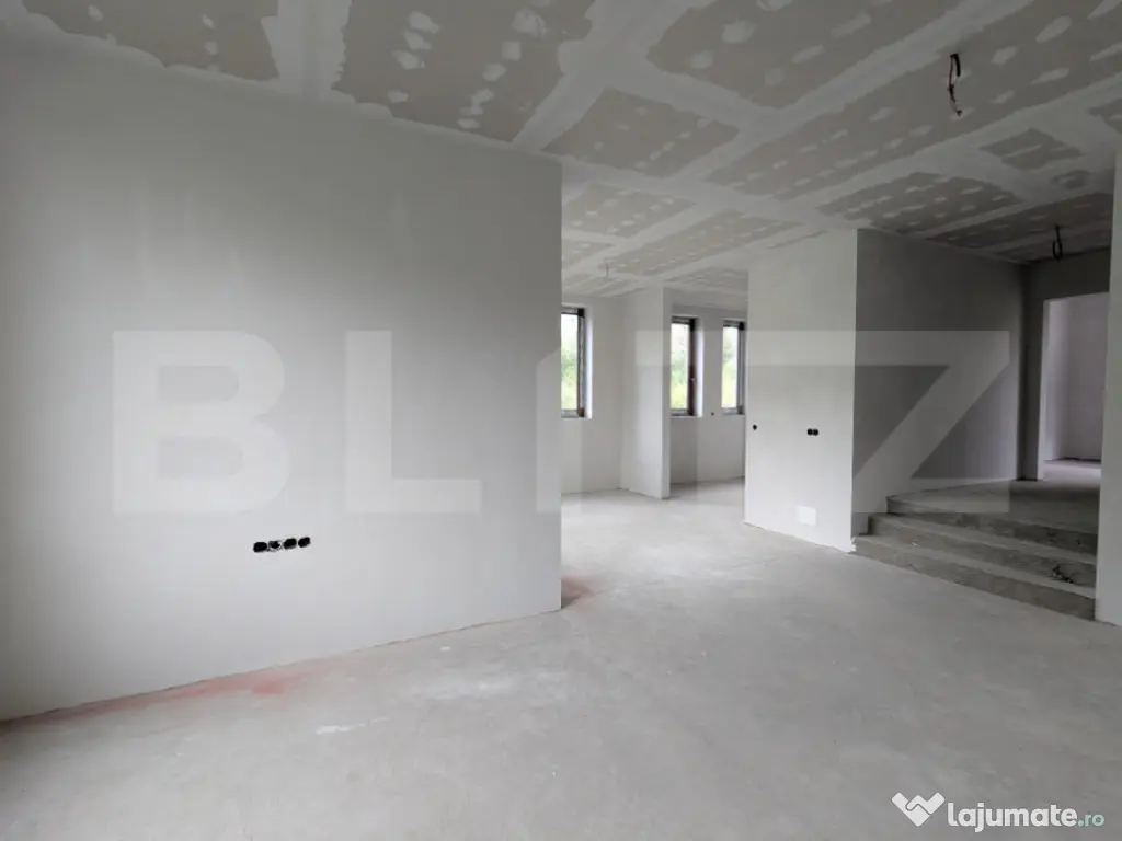 Blitz propune spre vânzare un duplex modern, cu grădină, la doar 15 km de Cluj-Napoca Proprietatea este parte a unei comunități noi, situată într-o zonă aflată în plină dezvoltare, cu expunere sudică și arhitectură contemporană. Imobilul este atent compartimentat, oferind spații luminoase și bine proporționate. Suprafață utilă: 150 mp Teren: 800 mp Compartimentare: Parter: living cu zonă de dining și acces la terasă, bucătărie închisă, baie, spațiu tehnic/spălătorie Etaj: dormitor matrimonial cu dressing și baie proprie, două dormitoare, baie secundară, logie, spațiu de depozitare Predare la semifinisat: pereți gletuiți, sape turnate, încălzire în pardoseală la parter, instalații trase pe poziții. Se predă racordată la toate utilitățile. O locuință ideală pentru familii, ce oferă intimitate, suprafață generoasă și o bună perspectivă investițională. Pentru detalii suplimentare sau programarea unei vizionări, vă invităm să ne contactați. Cod ofertă / ID BLITZ: P149648 Id intern: P149648 Număr niveluri imobil: 1 Număr Băi: 3 Nr. locuri parcare: 2 Curent Apă Canalizare Gaz