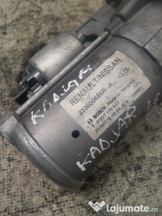 Electromotor Renault Kadjar 1.6 2017. Cod(uri): 233000686R. Piesele comercializate sunt originale, provenite din dezmembrari. Dispunem de o gama larga de piese multimarca. Piesele sunt verificate inainte de a fi puse spre vanzare. In caz de neconformitate piesa se poate returna. Va rugam sa verificati disponibilitatea pieselor telefonic. Trimitem in tara prin curier.