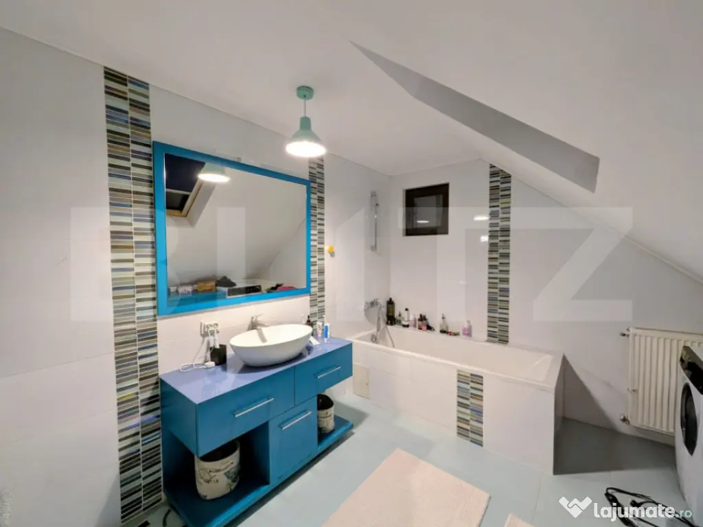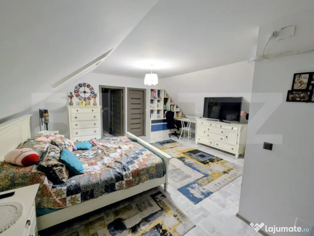 Descoperă confortul și relaxarea într-o casă modernă, perfectă pentru viața de familie! Suprafață utilă: 115 mp Suprafață teren: 350 mp Această casă elegantă și luminoasă, este structurată pe parter și mansardă și oferă tot confortul necesar pentru o familie. Compartimentare: Living spațios 3 dormitoare, dintre care unul matrimonial cu baie proprie și dressing Bucătărie funcțională Baie suplimentară Foisor exterior, ideal pentru relaxare și socializare Exterior: Curte generoasă de 350 mp, perfectă pentru grădină sau activități în aer liber Casa combină designul modern cu funcționalitatea, oferind un spațiu primitor și practic, gata să devină acasă. Cod ofertă / ID BLITZ: P157969 Id intern: P157969 Număr niveluri imobil: 1 Număr Băi: 2 Curent Apă Canalizare Gaz