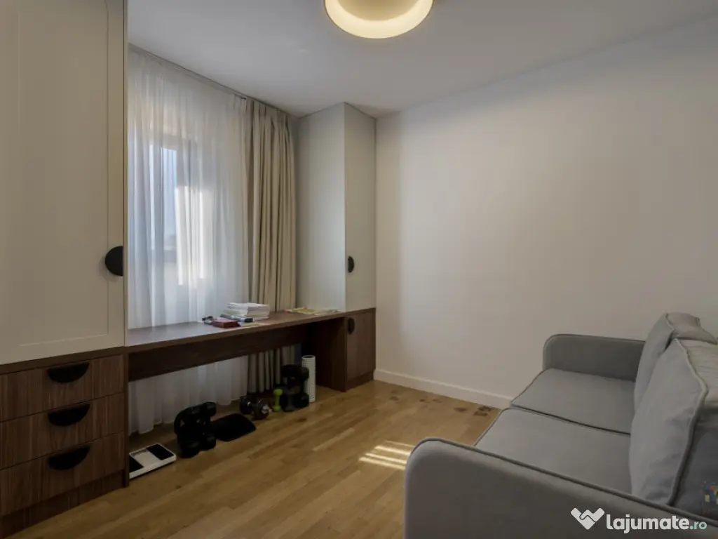 Situat într-unul dintre cele mai rafinate și căutate perimetre ale capitalei, Dacia – Eminescu, la doar câteva minute de Grădina Icoanei, acest apartament cu 4 camere reprezintă o combinație armonioasă între eleganța designului contemporan și confortul unei locuințe de familie. Proprietatea se află într-un imobil modern finalizat în anul 2009 și oferă o suprafață utilă generoasă de 114 mp, atent compartimentată pentru a crea spații fluide, luminoase și funcționale. Apartamentul a fost complet renovat recent, sub coordonarea unui arhitect, fiecare detaliu fiind gândit pentru a obține un interior coerent, sofisticat și atemporal. Conceptul de amenajare se remarcă printr-un design minimalist, elegant și cald, în care liniile curate sunt completate de texturi naturale și materiale de foarte bună calitate. Atmosfera este una primitoare și echilibrată, spațiul fiind ideal pentru o familie cu doi copii, oferind atât zone de relaxare confortabile, cât și spații intime bine definite. Finisajele premium, paleta cromatică rafinată și atenția acordată detaliilor conferă locuinței o identitate discretă, dar distinsă. Apartamentul dispune de centrală termică proprie, asigurând independență și eficiență în gestionarea confortului termic. Poziționarea excelentă, într-o zonă centrală apreciată pentru arhitectura sa elegantă, proximitatea parcurilor, cafenelelor și a celor mai bune școli din oraș, transformă această proprietate într-o locuință ideală pentru un stil de viață urban, sofisticat și echilibrat. Id intern: P249458 Confort: 1 Tip imobil: Bloc de apartamente Număr Băi: 2 Comision cumpărător: 3%