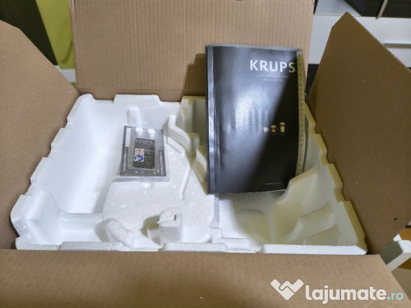 Espressorul automatic Krups EA811010, cu tehnologia avansată, este nou, niciodată utilizat, l-am desigilat doar pentru poze. Cu o putere de 1450W și 15 bari de presiune, acesta este echipat cu un rezervor de boabe de 260g și un rezervor de apă detașabil de 1.7L. Dispune de o râșniță cu 3 nivele, 3 trepte de temperatură și o duză de abur pentru cappuccino. Cu sistemul quattro force, espressorul are o râșnire cu 20% mai rapida, presare perfecta, sistem de extracție avansat al cafelei si golire automata a sistemului după fiecare utilizare, pentru performanțe de durată. Ușor de curățat, duza de abur oferă posibilitatea preparării unui număr mare de băuturi.