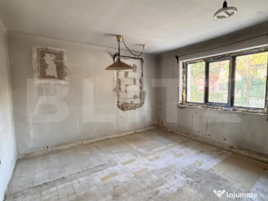 Blitz ofera spre vanzare casa individuala , situata in cartierul Marasti- zona strazii Bucuresti. Cu o suprafata de 119 mp utili și 578 mp de teren, curte betonata pentru a putea primi 10 autovehicule, imobilul reprezinta locul perfect pentru a construi o lucinta familiala, sediu de firma sau clinica medicala. Casa este construita din caramida si beton, acoperis cu tigla, avand un regim de inaltime parter plus pod. Compartimentare: la subsol avem camera centralei si pivnita iar la Parter avem 3 camere, bucatarie, hol, baie, camara de alimente, spalatorie, debara. Beneficiaza de geamuri din tamplarie PVC, usa PVC la intrare. Locuința este situată într-o zonă liniștită, dar foarte bine conectată, în apropierea mijloacelor de transport, a unităților de învățământ și a centrelor comerciale. O proprietate spațioasă, luminoasă și perfectă pentru o familie numeroasă sau pentru desfasurarea unor activitati conexe ( birouri, gradinita, clinica etc ) Cod ofertă / ID BLITZ: P155305 Id intern: P155305 Număr Băi: 1 Nr. locuri parcare: 5-10 Curent Apă Canalizare Gaz