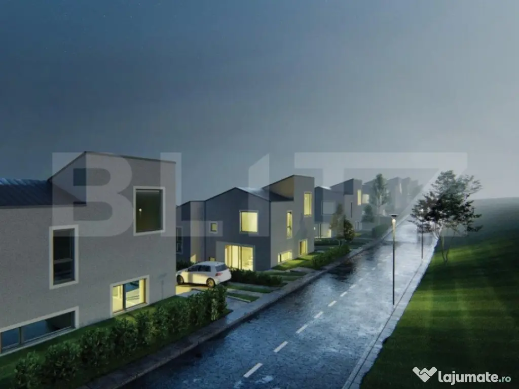 Blitz ofera spre vanzare case cuplate pozitionate in Dezmir, in Complexul Sunset City Premium Residence , intr-o zona numai de case, nou dezvoltata, aerisita, linistita, cu acces facil si cu o panorama deosebita. Ferite de zgomotul și poluarea orașului, dotate cu facilitățile unei zone rezidențiale moderne, casele beneficiaza de un cadru natural care va va face sa va simțiți mereu in vacanța si de un design unic, avangardist si totodata practic, care se contopeste in armonie perfecta cu natura, al carei verde ne încarcă și ne oferă plusul de energie necesar menținerii celui mai bun tonus. Constructiile sunt din caramida pe fundatii de beton armat si sunt dipuse pe doua niveluri, P+E, fiind astfel compartimentate : la parter regasim un living generos in care putem petrece clipe memorabile alaturi de familie si prieteni, o bucatarie cocheta, o baie si o terasa de pe care se pot admira apusurile, deoarece orientarea vestica ofera spectaculozitate, iar la etaj : dormitorul matrimonial cu baie proprie si alte 2 dormitoare si o baie, care vor desavarsi atmosfera intima. Pentru un plus de confort si pentru a putea fi personalizate asa cum va doriti casele se predau la stadiul de semifinisat, cu centrala termica proprie si incalzire in pardoseala, geamuri panoramice triplex, instalatii trase la pozitie, cu sapa si peretii gletuiti. In ceea ce priveste utilitatile, ansamblul se va preda cu canalizare, apa curenta si energie electrica pana cel tarziu la 31 august 2022. Accesul catre zona centrala a orasului si catre Iulius Mall este forte rapid(circa 15 min), castigand astfel cel mai valoros asset al zilelor noastre : timpul. Astfel, Sunset City Premium Residence ofera toate conditiile de care aveti nevoie pentru a va bucura de un stil de viata sanatos si relaxat. La pretul afisat se adauga TVA de 5%. Cod ofertă / ID BLITZ: P123065 Id intern: P123065 Număr niveluri imobil: 1 Număr Băi: 3 Nr. locuri parcare: 2