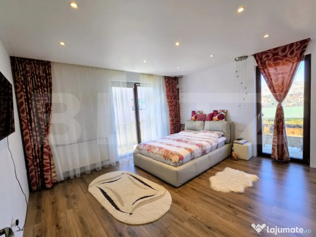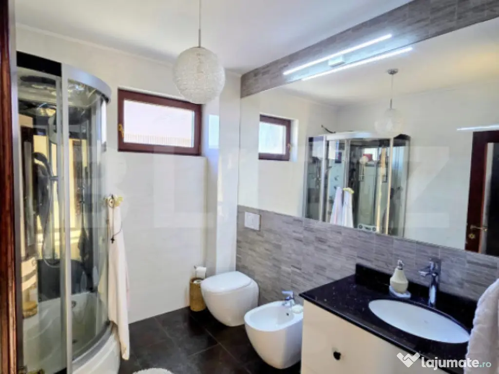 Blitz va prezinta o proprietate specială, situată într-o zonă aerisită, liniștită, aproape de stația de autobuz, strada principală și centura Donath Park, care oferă acces rapid în cartierul Grigorescu din Cluj-Napoca. Această casă este ideală pentru cei care își doresc spațiu, confort și un stil de viață relaxat aproape de oraș. ???? Caracteristici generale Suprafață utilă: 168 mp Teren: 531 mp (inclusiv amprenta casei) Regim: Parter + Etaj Finalizată: 2017 Mobilată complet Construcție solidă, extrem de îngrijită ???? Exterior și grădină Proprietatea se remarcă prin spații exterioare generoase și bine amenajate: Grădină în fața și în spatele casei Terasă pentru relaxare Zonă de grătar pentru seri plăcute alături de familie și prieteni Gazon îngrijit Poartă electrică la intrare Zonă aerisită și priveliște deschisă ???? Compartimentare și interior Parter: Bucătărie separată Living spațios Cameră suplimentară Cămară Baie Etaj: 3 dormitoare 2 balcoane de cca 13 mp fiecare Baie Dressing Dormitor matrimonial cu balcon cu sticlă securizată 13 cm Detalii suplimentare: Tavane din gips-carton Uși interioare din stejar masiv Ferestre Rehau cu 7 camere și 3 sticle, asigurând izolare fonică și termică superioară ???? Dotări și sisteme de încălzire Încălzire în pardoseală în zonele cu gresie Calorifere în restul casei 2 centrale: pe peleți + panouri pentru apă caldă si centrala pe gaz Șemineu real pe lemne Curent monofazic ???? Materiale și construcție Cărămidă Wienerberger 25 cm Fundație de beton solidă Izolație polistiren EPS 80 – 10 cm + tencuială decorativă 2 mm Acoperiș lemn + învelitoare Această proprietate a fost construită cu materiale de cea mai bună calitate, de la fundație până la finisaje, pentru confort și durabilitate. ???? De ce să vizionezi această casă Această locuință nu este doar o casă, ci un cămin cu personalitate, unde te poți relaxa în grădină, în zona de terasă sau lângă șemineu, și unde fiecare cameră oferă spațiu generos și intimitate. Este ideală pentru o familie care caută calitate, confort și acces rapid la oraș, într-o zonă verde și liniștită. ???? O vizionare merită tot efortul – casa vorbește de la sine! Cod ofertă / ID BLITZ: P166597 Id intern: P166597 Număr niveluri imobil: 1 Număr Băi: 2 Nr. locuri parcare: 3 Curent Apă Canalizare Gaz