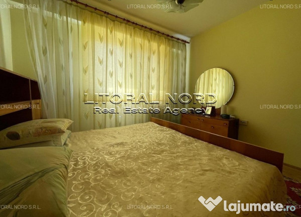 Proprietate intermediată exclusiv de agenția LITORAL NORD S.R.L. Casa de Cultura, apartament 3 camere, decomandat, confort 1, cu suprafata de 66,60mp, din care 62,70 mp utili + 3,90mp balcon, situat la etajul 1, intr-un bloc de 10 niveluri, in apropriere de intersectia cu Str. Bucuresti. Apartamentul este incadrat, liber, prezinta imbunatatiri, gresie, faianta, parchet de lemn in stare foarte buna, tamplarie PCV, gaze sunt la usa si se vinde mobilat, utilat, asa cum se vede in fotografii. Mobila nu face obiectul vanzarii, se cedeaza gratuit daca clientul este interesat. Acte: cadastru, intabulare, certificat energetic, liber de sarcini, se accepta credit. Detalii suplimentare, agentia Litoral Nord, tel: 0720300272 Confort: 1 Tip imobil: Bloc de apartamente Număr Băi: 1 Comision cumpărător: 2%