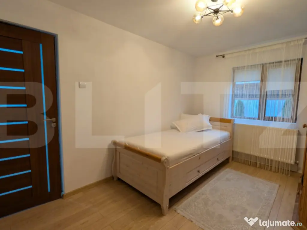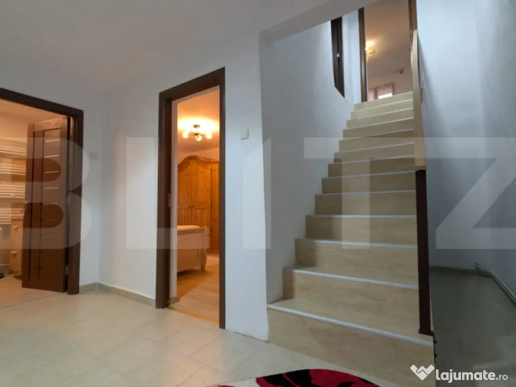 Această proprietate deosebită, construită inițial în anul 1978 și renovată în totalitate, îmbină farmecul construcțiilor solide din cărămidă cu funcționalitatea și confortul modern. Situată pe un teren generos de 410 mp, casa oferă 135 mp de suprafață utilă, excelent compartimentată pentru a răspunde nevoilor unei familii. Imobilul este dispus pe subsol/demisol, parter, etaj și mansardă, fiecare nivel fiind gândit pentru confort și eficiență. La interior, compartimentarea include 3 dormitoare luminoase, un living spațios, două băi moderne, precum și o cameră tehnică utilă. Finisajele sunt de calitate, iar întreaga locuință este mobilată și utilată complet, gata să devină „acasă” fără investiții suplimentare. Construcția din cărămidă asigură durabilitate și izolare excelentă, iar acoperișul tip Bilka oferă protecție și estetică. Ferestrele cu geam termopan și profil PVC contribuie la eficiența energetică, iar ușa metalică oferă siguranță. Încălzirea este asigurată de centrala termică pe gaz. La exterior, proprietatea impresionează prin grădina îngrijită, amenajată cu gazon — un spațiu perfect pentru relaxare, timp petrecut în aer liber sau activități cu familia. Această casă reprezintă combinația ideală între stil, confort și funcționalitate, fiind potrivită pentru cei care își doresc un cămin complet, modern și bine întreținut. Cod ofertă / ID BLITZ: P12056 Id intern: P12056 Număr Băi: 1 Nr. locuri parcare: 2 Curent Apă Canalizare Gaz