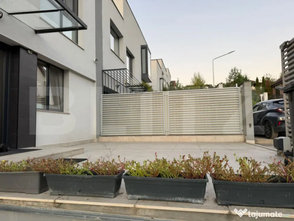 Blitz oferă spre vânzare o unitate de duplex, spațios, modern cu acoperiș plan, spatii vitrate mari, edificat in 2016, situat in Borhanci zona străzii Remenyk Sandor. Suprafața utila a imobilului este de 160 mp cu teren aferent de 178 mp, având astfel compartimentarea : -Demisol 31 mp: spațiu tehnic, cămară, spălătorie -uscătorie - Parter 65 mp: hol, bucătărie, living, dining -Etaj 65mp: hol, 3 dormitoare, 2 bai (1 baie matrimoniala). Imobilul se vinde complet mobilat si utilat cu mobilier personalizat, mașină de spălat vase, frigider, aragaz incorporate, mașină de spălat haine, uscător de rufe, congelator vertical, congelator orizontal. Încălzirea este cu radiatoare si centrala pe gaz, parchet din lemn masiv stejar 2.7 cm, scări îmbrăcate in lemn masiv. Băile sunt placate cu gresie si faianță modern, având fiecare 2 lavoare, vas wc + bideu Wileroy&Bosch. Imobilul dispune de sistem fotovoltaic (acte PROSUMATOR ), 8 kW trifazic racordat, ,sistem descarcare in retea ,panouri si invertor, AC, sistem monitorizare video exterior, video interfon, sistem alarma conectat.Curtea are o suprafață de 178 mp , parțial pavata, cu loc de joaca pentru copii, parțial gazon si sistem de irigație, terasa supraînălțată si acoperita de 25 mp, cu acces direct din bucătărie, spațiu de depozitare scule grădinărit, biciclete. Porțile sunt culisante, automatizate, cu posibilitatea de parcare a doua mașini in curte. Cod ofertă / ID BLITZ: P153809 Id intern: P153809 Număr niveluri imobil: 1 Număr Băi: 2 Curent Apă Canalizare Gaz Sistem irigaţie Climă