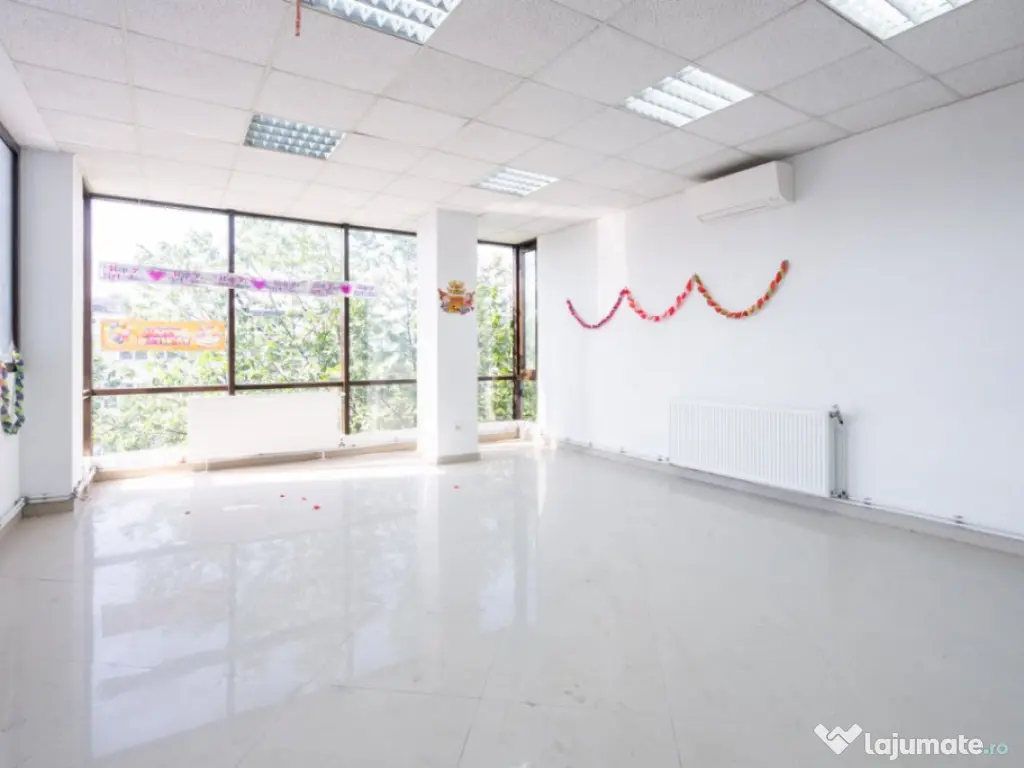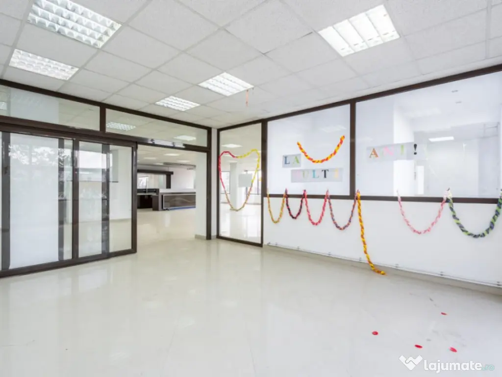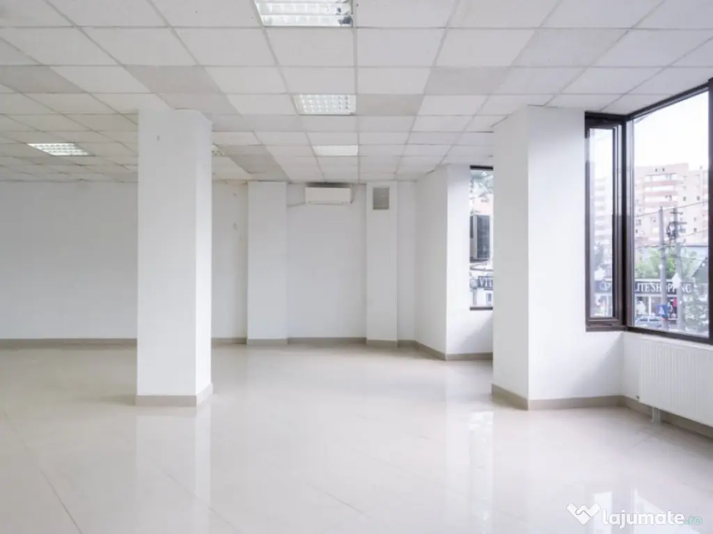 - Spațiul comercial de 60 mp situat la parter este liber și disponibil pentru închiriere, având o poziție excelentă în zona cu trafic pietonal intens
