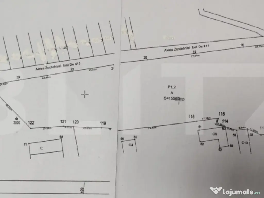 Această proprietate se poate vinde în suprafață totală sau parcelat în două parcele, una de 15.500 mp și cealaltă de 33.074 mp, în funcție de necesități.