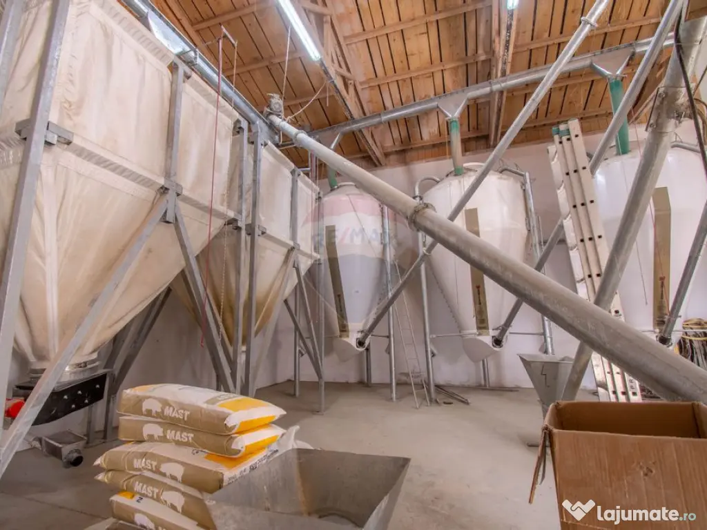 Vă propunem spre vânzare o fermă modernă de porci, complet echipată și situată într-o zonă accesibilă, ideală pentru investitorii interesați de profitabilitate și sustenabilitate. Dezvoltată cu fonduri europene și ieșită de sub monitorizare de 3 ani, ferma respectă toate standardele europene, fiind organizată eficient pentru o producție continuă. Capacitate de Reproducție și Îngrășare: Reproducție: Ciclu de reproducție optimizat, cu o capacitate de 50 de capete per ciclu, pentru creștere continuă. Îngrășare: Zona de îngrășare poate găzdui până la 550 de capete, maximizând astfel producția și eficiența proceselor. Abator Integrat și Fabrica de Nutrețuri: Abatorul de la fața locului facilitează procesarea rapidă și eficientă, iar fabrica de nutrețuri oferă control asupra hrănirii, reducând costurile și asigurând continuitatea producției. Energie și Independență Energetică: Dotată cu un post de transformare de 120 KW și panouri fotovoltaice de 30 KW, ferma beneficiază de o independență energetică semnificativă, completată de baterii de stocare de 10 KW, generând economii la facturile de energie. Infrastructură de Apă și Stații de Încărcare pentru Vehicule Electrice: Conectată la rețeaua de apă potabilă, cu un bazin de stocare de 80 mc, ferma poate susține operațiuni intensive. Cele două stații de încărcare pentru vehicule electrice completează profilul sustenabil al fermei. Suprafață și Clădiri: Complexul include 9 clădiri moderne, cu o suprafață utilă totală de 2116,5 mp, și un teren de 5600 mp, cu posibilitatea de extindere la 16200 mp – ideal pentru viitoare dezvoltări. În prezent, ferma deține 200 de capete pregătite pentru producție, oferind un start imediat noului proprietar. Toate autorizațiile sunt la zi, facilitând preluarea rapidă a afacerii, fără alte proceduri suplimentare. Ferma reprezintă o oportunitate stabilă și profitabilă, cu infrastructură de ultimă generație și costuri operaționale reduse datorită independenței energetice și resurselor de hrănire proprii. Vă așteptăm la vizionare pentru a descoperi această afacere unică și rentabilă! Suprafaţă totală: 2490 m² Suprafaţă birouri: 88 m² An finalizare construcție: 2018 Stadiu construcţie: Finalizat Număr încăperi: 9 Producție Depozitare Acces: Acces TIR Posibilitate parcare: Da Nr. locuri parcare: 5-10 Tip imobil: Alte tipuri