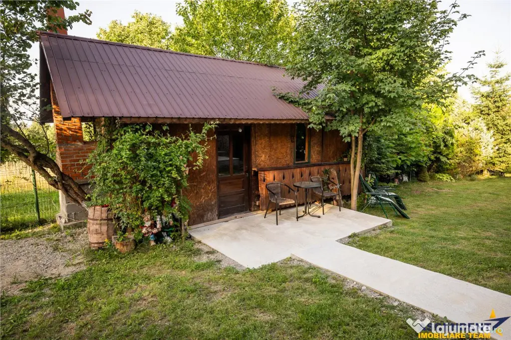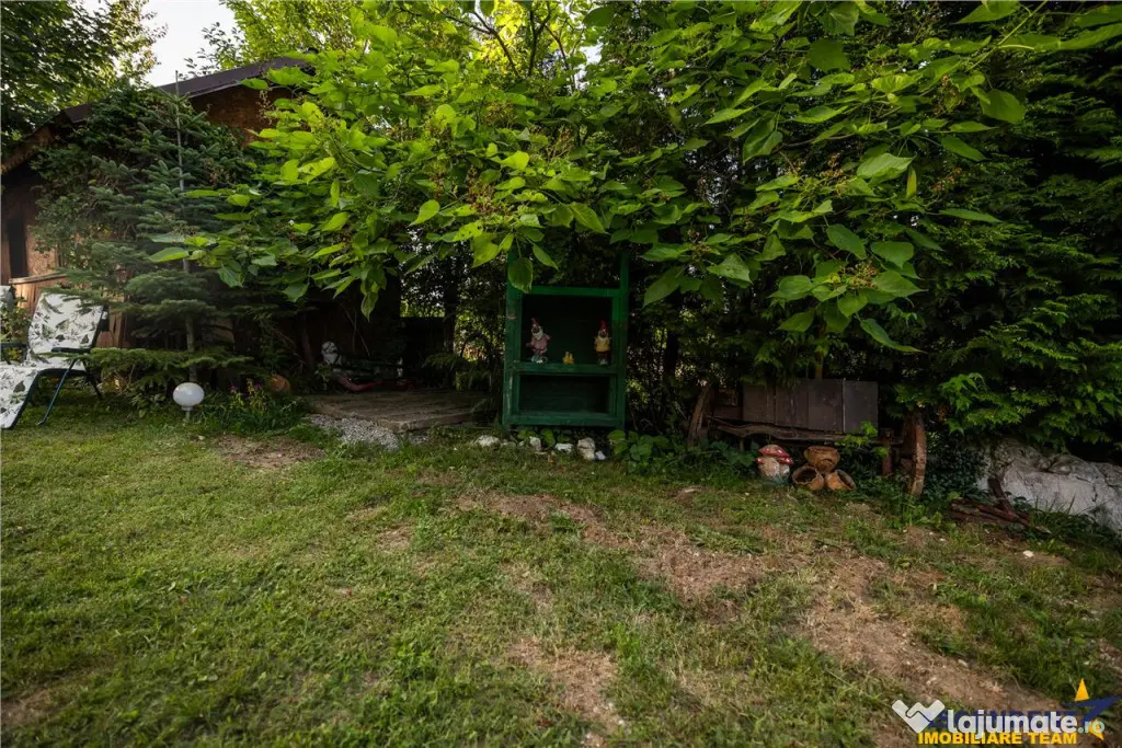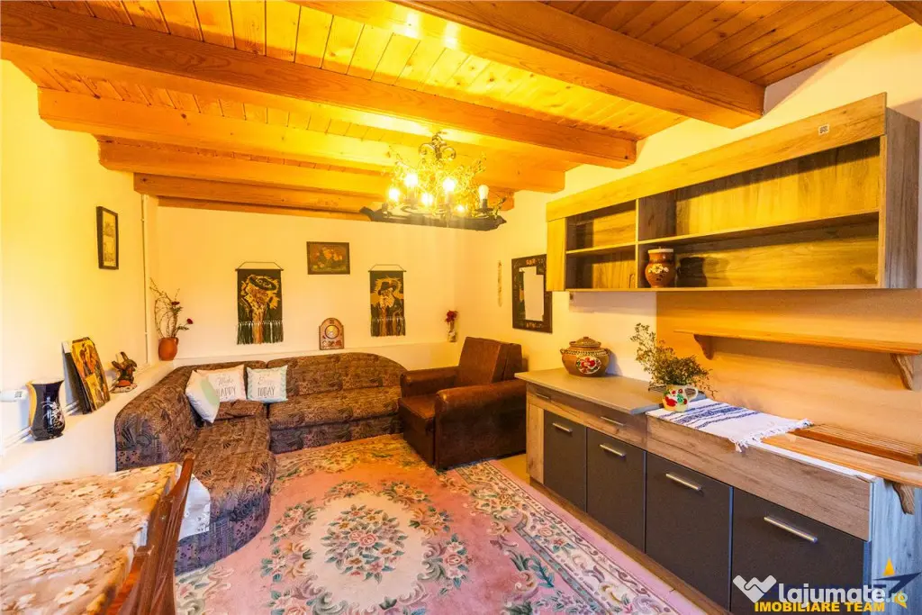 Corpul secundar aduce un plus de autenticitate prin livingul rustic cu bucatarie incorporata, garaj, grup sanitar si camere separate pentru familie, prieteni sau turisti. Terasele generoase, foisorul si curtea ingrijita creeaza un cadru pretios pentru relaxare, evenimente intime sau seri linistite in mijlocul naturii.