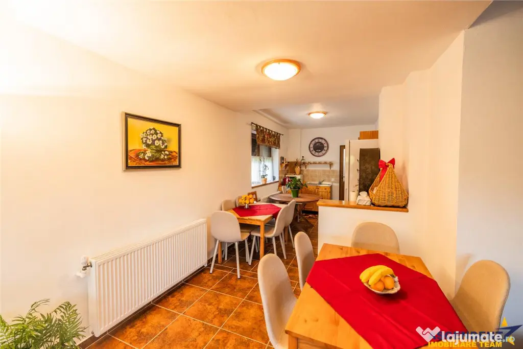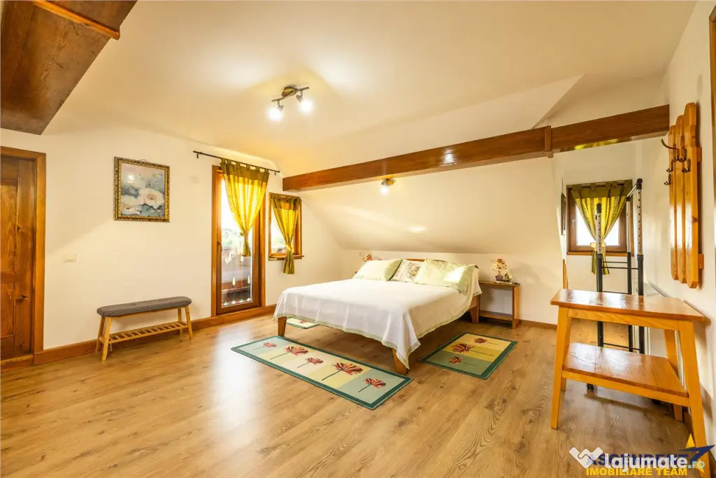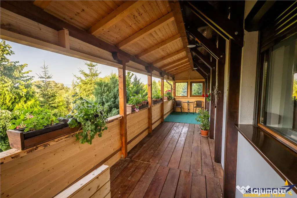 Aceasta proprietate rafinata imbina confortul unei locuinte permanente cu farmecul unei destinatii turistice montane. Cu o suprafata utila de 414 mp si un teren apreciabil de 1.742 mp, recomandat atat pentru cei care cauta atat un camin cald, cat si o investitie cu potential real de venit pasiv.