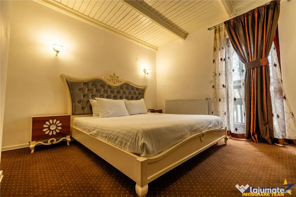 Aceeasi linie eleganta o regasim in pensiune, linia mobilierului fiind una moderna, comandate special, astfel incat fiecare camera are o nota aparte.