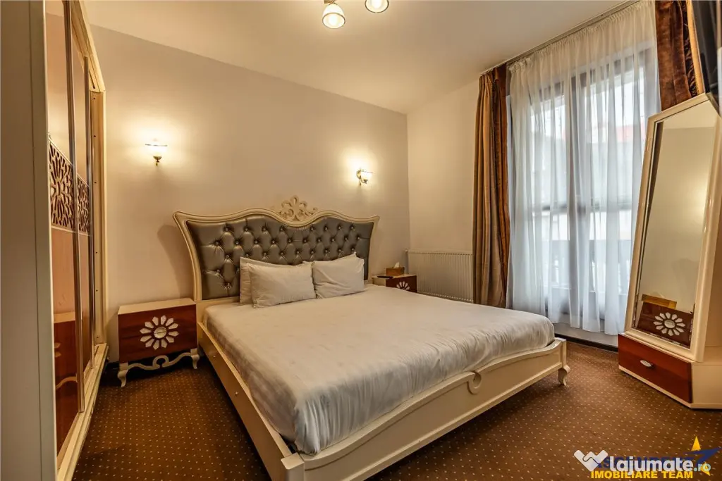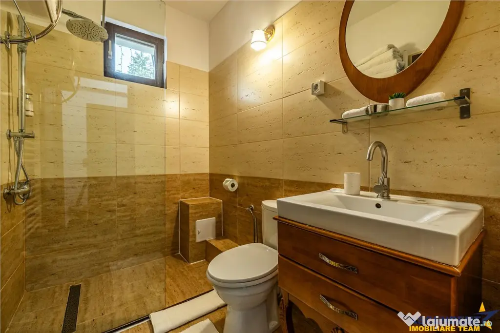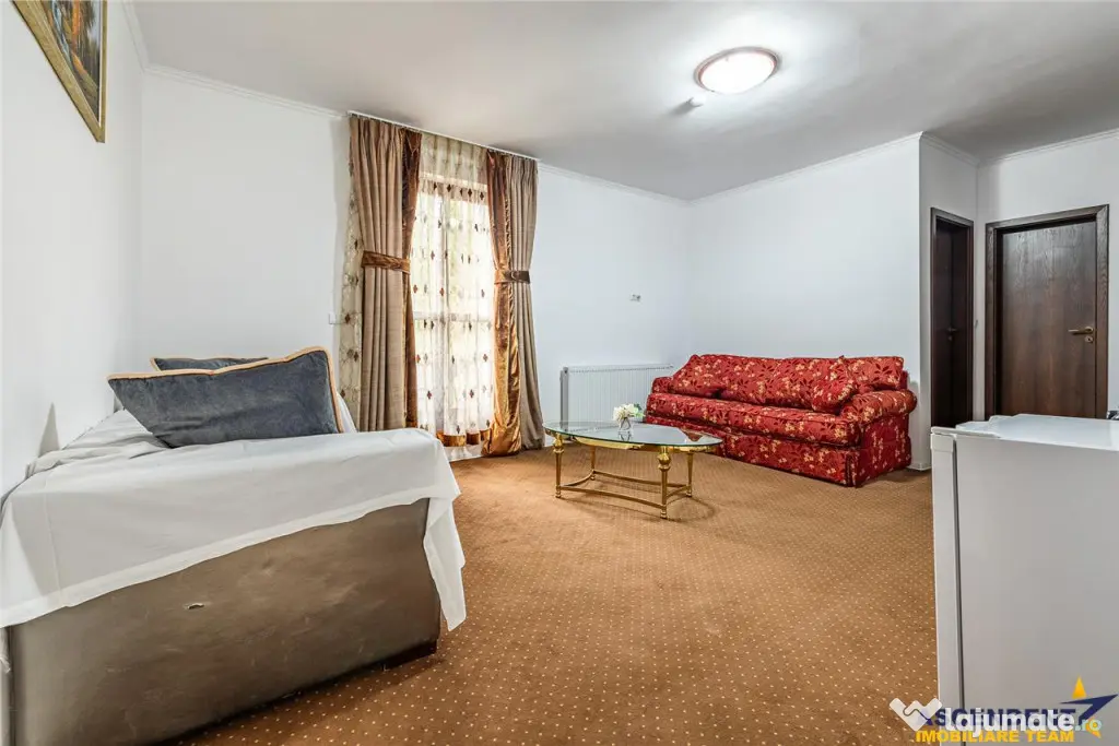 - la etajul 1 si 2 sunt 10 camere structurate ca si apartamente sau suita de apartament si living pentru familii cu copii, fiecare deservite de bai cu cabina de dus