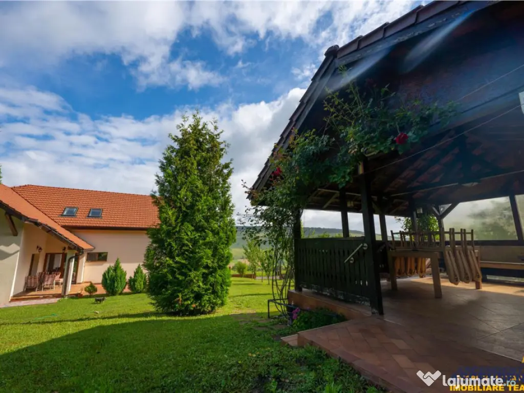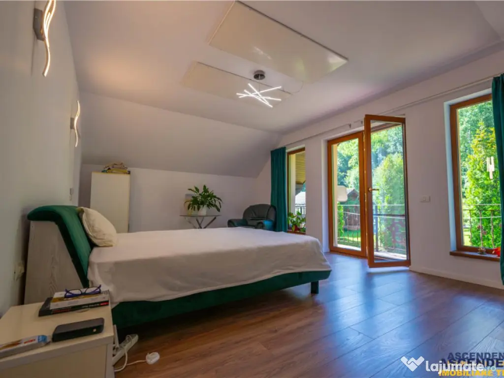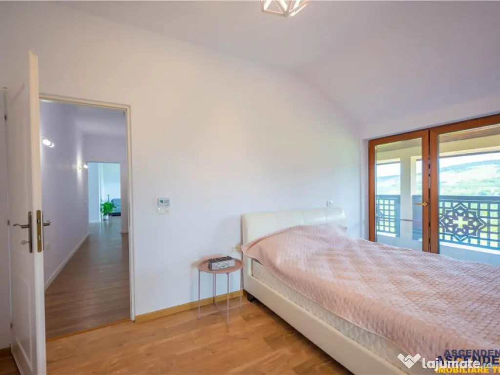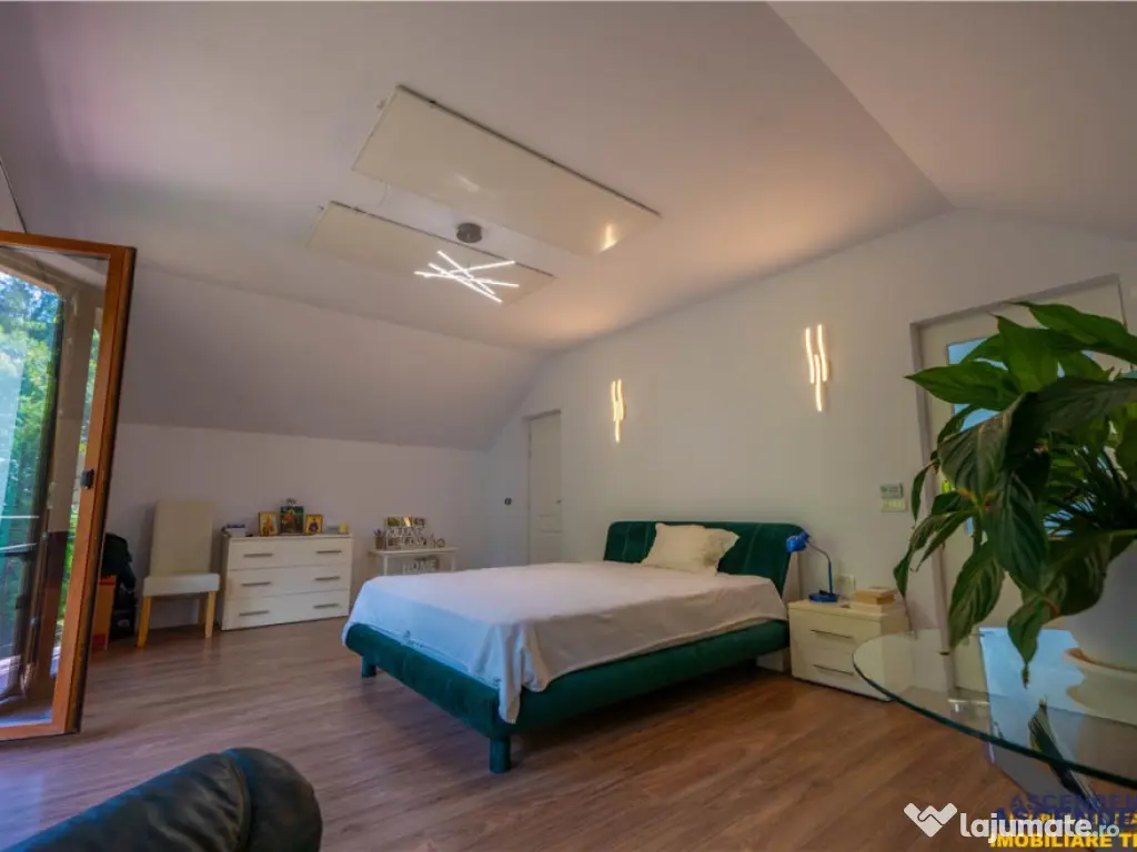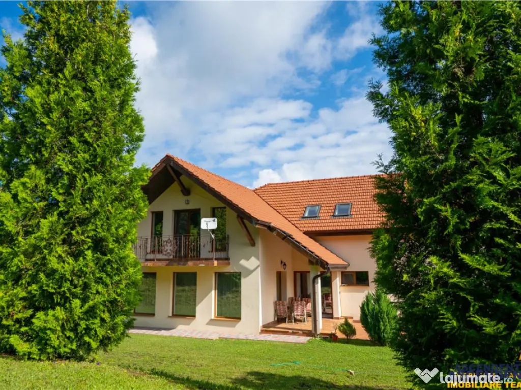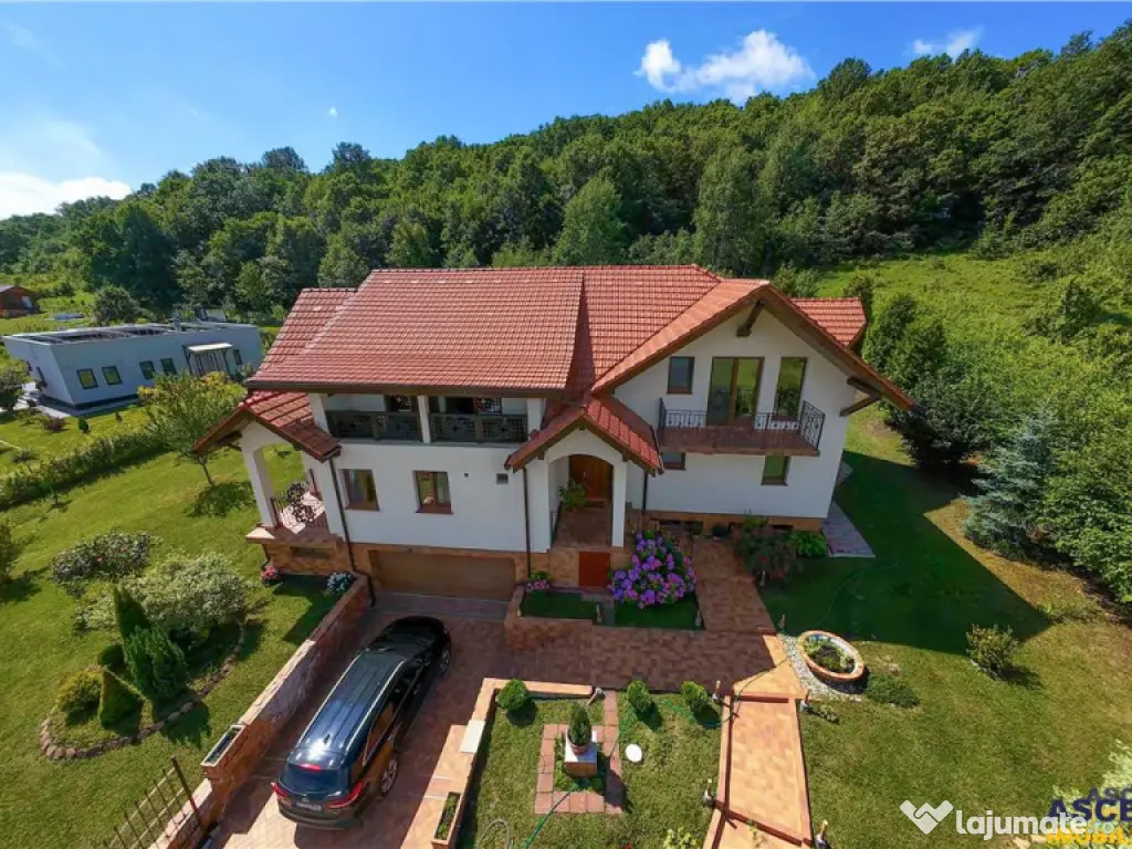 Buyer Commission: 2% VAT of the transaction value. ASCENDENT IMOBILIARE is honored to present for sale a unique villa situated in an exceptional natural setting, at the foothills of the Poiana Rusca Mountains, in Valea Nandrului, Hunedoara. We invite you to enjoy an initial tour of the property from wherever you are right now by accessing the presentation video: https://www.youtube.com/watch?v=yJ4-CXigVrEamp;t=5s The property is located in a hilly area, at the edge of the forest, on a generous 1,750 sqm plot of land landscaped with a wide variety of mature plants. This elegant villa meets the highest standards of quality and comfort, featuring a ground footprint of 189 sqm and a structure of B GF A (basement, ground floor, and attic), as follows: Basement: Spacious garage for 2 cars with an automated gate and direct access to the ground floor, laundry room, technical room, and multiple storage spaces. Ground Floor: Open-plan living room and kitchen with access to the terrace, pantry, dressing room, bathroom, and a separate apartment with private access, offering comfort for two families if desired. Attic: Living area and four bedrooms, a balcony with panoramic views, and a master bedroom with its own en-suite bathroom. The residence is fully equipped with all utilities for optimal comfort: electrical supply including three-phase power, a high-quality Sunjoy radiant heating system, septic tank, internet connection via antenna, and a private water source extracted from a depth of 100 meters. The property was fully renovated in 2021 and is sold furnished and equipped. This offer is ideal for both investment purposes (senior center or guesthouse), with nearby attractions such as Corvin Castle, Prislop Monastery, the tomb of Father Arsenie Boca (25 km away), Sf. Nectarie Hermitage, Poiana Rusca Mountains, Deva Fortress, and more, as well as for residential purposes, for those seeking privacy in a remarkable natural environment while remaining close to urban life, being located just 4 km from Hunedoara and 14 km from Deva. Energy Performance Certificate: Certified Class B building with an annual specific energy consumption [KWh/msup2;year]: 184.7 CO2 equivalent emission index [KgCO2/msup2;year]: 7 Annual specific energy consumption from renewable sources [kWh/msup2;year]: 0 The property is fully registered and has all necessary documents for an immediate transaction. To discover this investment/residential opportunity and its admirable details, we invite you to schedule a viewing. Specialized Advisor for this Exclusive Offer: Mr. Florin Tonu Phone/WhatsApp: 40 721 218 273 Număr Băi: 4 Comision cumpărător: 0% Posibilitate parcare: Da Nr. locuri parcare: 2 Utilități: Curent Demisol