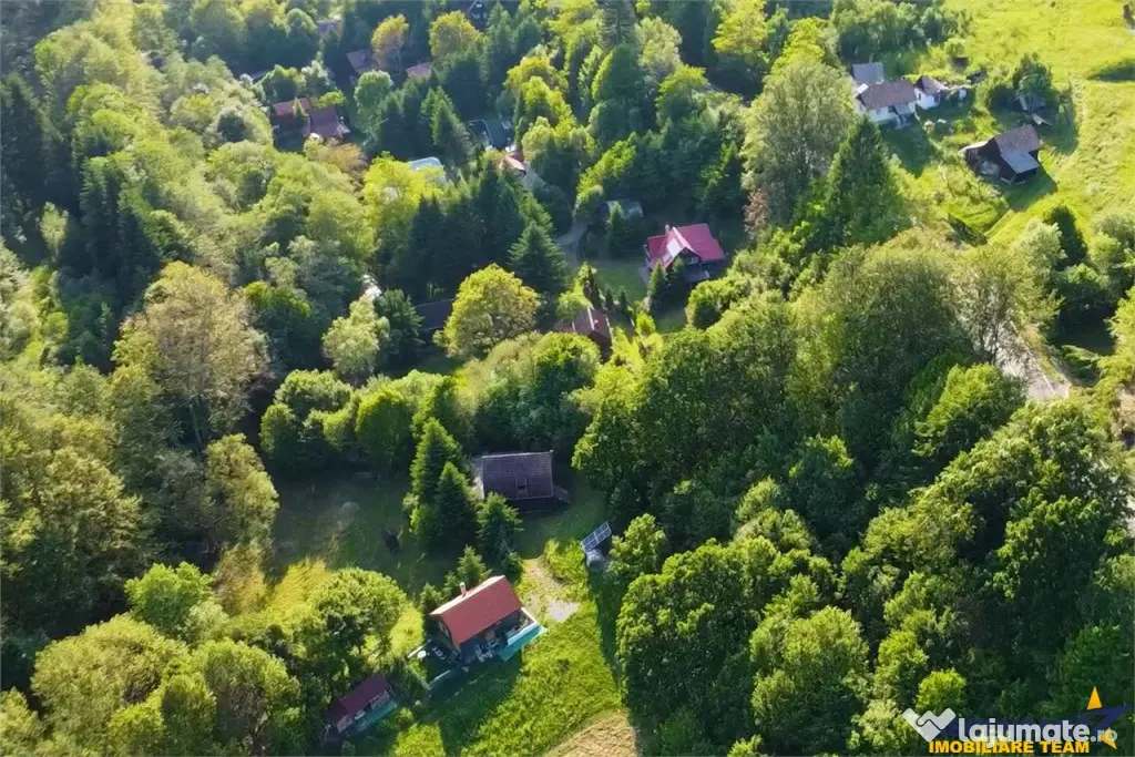 Pe terenul de 2.000 mp este construita, pe fundatie de beton, cu pereti din lemn, si acoperita cu tigla o casa de vacanta.