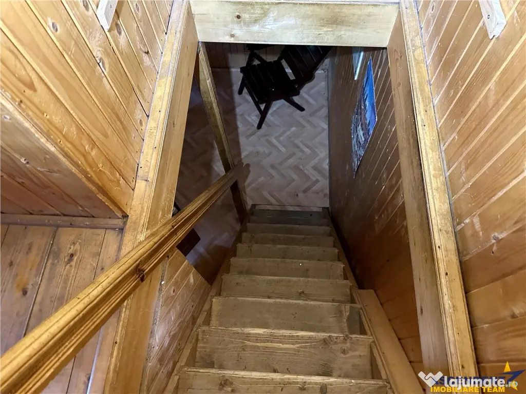 Casa de vacanta are la sol 64 mp si este compusa, la parter, din: o camera de zi, doua camere, o bucatarie, iar la mansarda din: un hol, patru dormitoare.