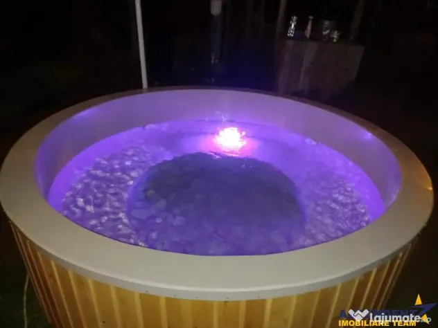 Curtea de 1.500 mp ofera un spatiu valoros pentru relaxare si distractie: jacuzzi exterior pentru 12 persoane, cu hidromasaj si lumini ambientale, piscina mare amplasata vara, zona de gratar, precum si un loc de joaca pentru copii cu casuta in copac si cutie de nisip.