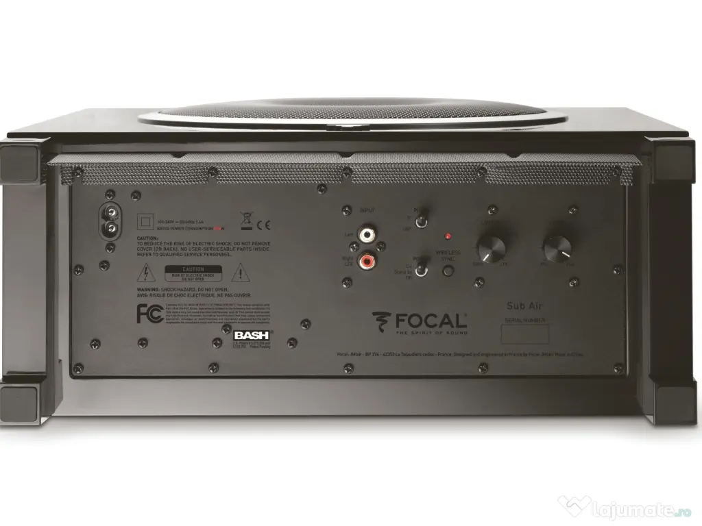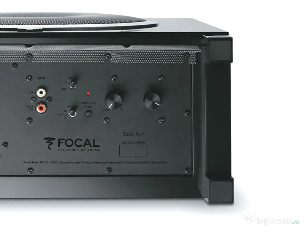 O caracteristică remarcabilă a subwooferului Focal Sub Air este conectivitatea sa wireless. Acesta vine cu un transmițător wireless extern care se conectează la receptorul AV sau amplificatorul integrat, eliminând necesitatea cablurilor pentru subwoofer. Această configurație wireless oferă o rază de aproximativ 15 metri, oferindu-ți flexibilitatea de a plasa subwooferul acolo unde sunetul este cel mai bun în cameră. Conexiunea wireless este ușor de realizat, subwooferul și transmițătorul fiind pre-împerecheate din fabrică.