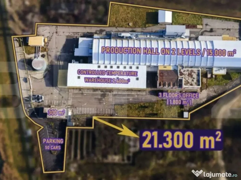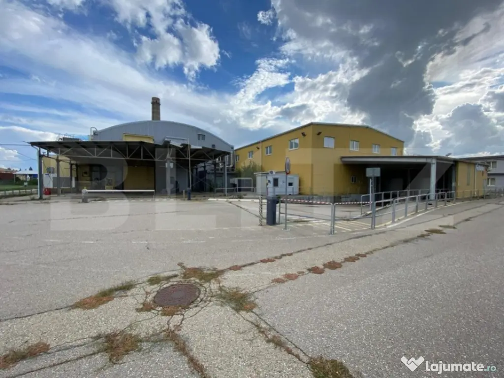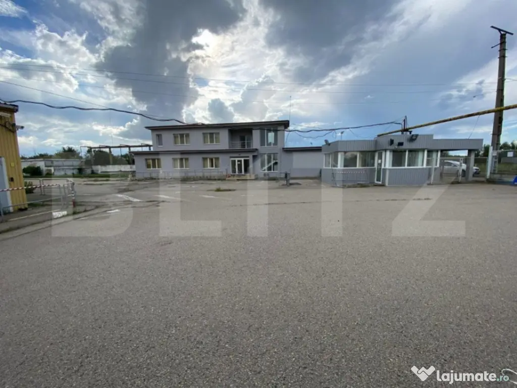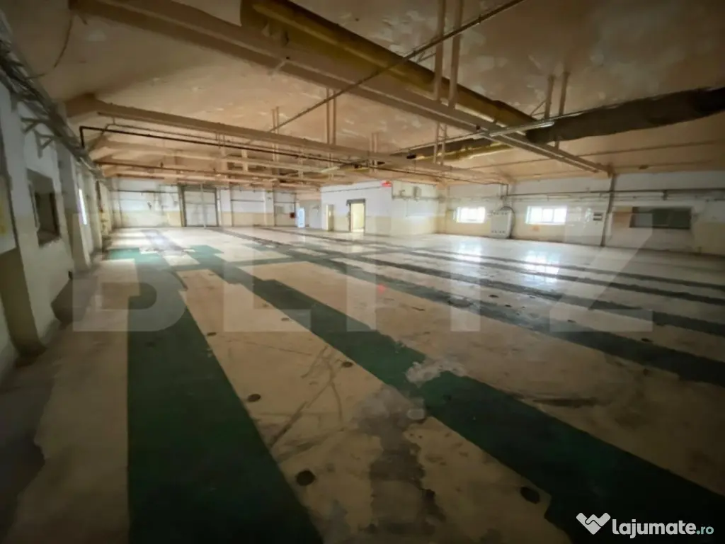Spatiu de productie situat intr-o zona industriala dezvoltata, compus din 23.000 mp teren imprejmuit cu zid inalt, peste 12.000 mp de hale de productie si depozitare cu inaltime totala de 12,87 m si 2600 mp de birouri. Spatiul este pretabil pentru productia alimentara, componente auto-moto, depozitare. Cod ofertă / ID BLITZ: P97548 Id intern: P97548 Suprafaţă totală: 15533 m² Suprafaţă birouri: 2 m² Stadiu construcţie: Finalizat Nr. locuri parcare: 20+ Tip imobil: Alte tipuri