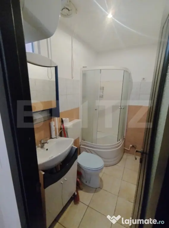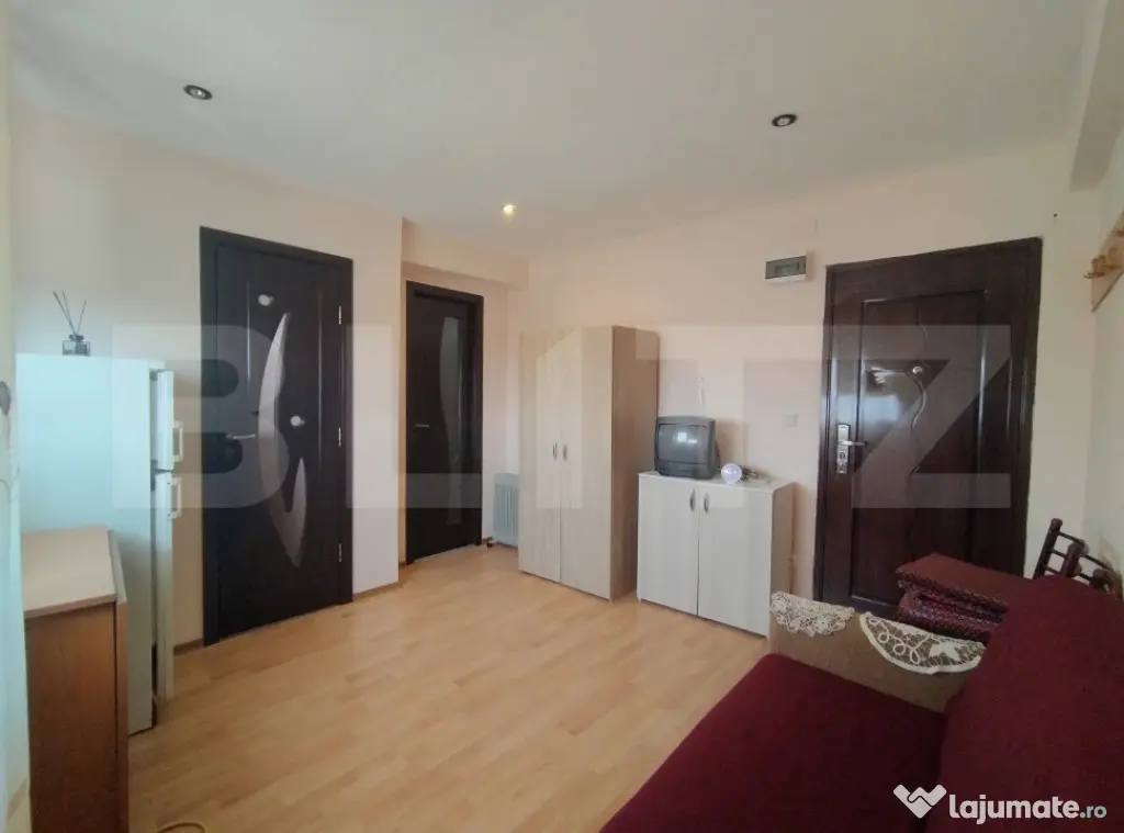 Blitz vă oferă spre vânzare garsonieră, mobilată și utilată, situată pe Calea Severinului, în spatele magazinului Brico Depot Craiova. Proprietatea este situată la etajul 2, într-un imobil cu regim de înălțime P+2+M, fiind potrivită atât pentru locuire, cât și pentru investiție. Dispune de o suprafață utilă de 16,32 mp si este compusă dintr-o cameră cu zonă de dormit, chicinetă și baie proprie cu cabină de duș. Încălzirea ambientală și a apei menajere se face pe curent electric. Dotări: boiler pentru apă caldă, alimentare gaz cu butelie, geamuri termopan, apometre și conductă de apă separată. Deși se află într-o zonă limitrofă a orașului proprietatea este foarte bine conectată la mijloacele de transport în comun, lângă zone de magazine și servicii.