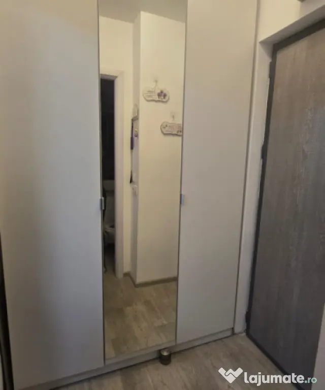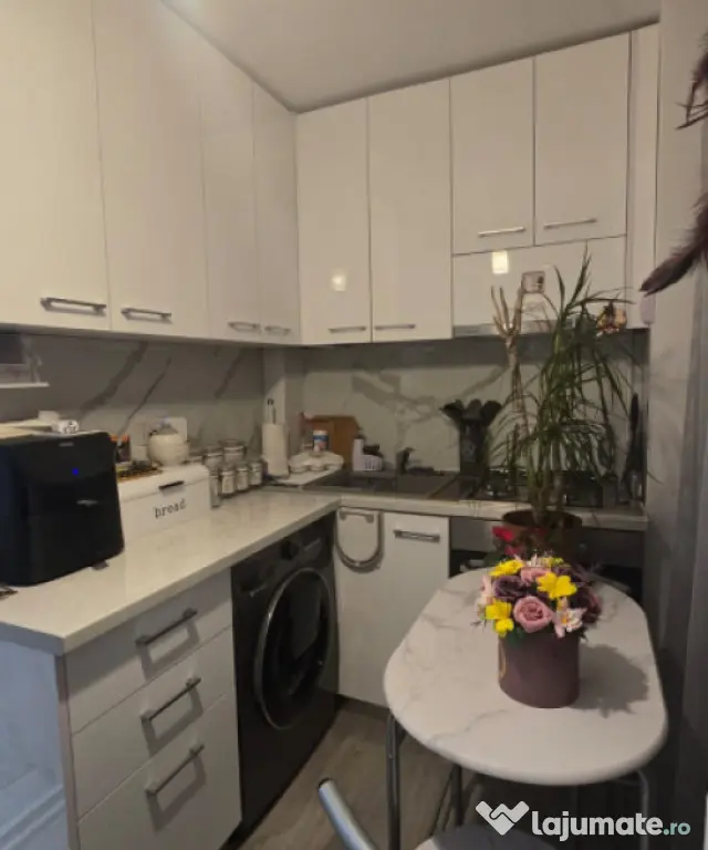 Garsoniera are un hol la intrare, baia pe dreapta, în față camera, bucataria a fost marita si pe suptafata balconului fiind destul de mare.