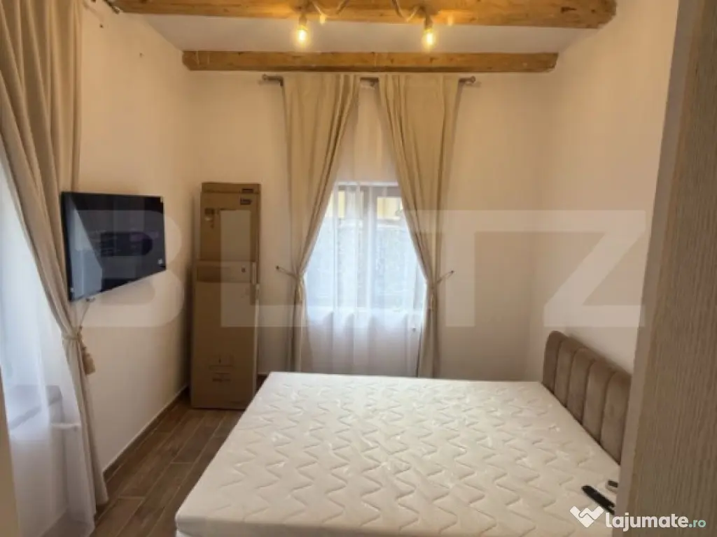 BLITZ vă propune spre închiriere o garsonieră cochetă la casă, cu o suprafață de 28 mp. Beneficiază de terasă privată, ideală pentru momente de relaxare. Imobilul se află la prima închiriere, totul fiind nou și atent amenajat. Localizată în centrul istoric, într-o zonă liniștită, ferită de agitația urbană. Potrivită pentru o persoană care apreciază intimitatea și liniștea. Nu rata ocazia! Programează o vizionare și descoperă confortul acestei garsoniere chiar azi! Cod ofertă / ID BLITZ: P165885 Id intern: P165885 Număr Băi: 1 Curent Apă Canalizare Gaz