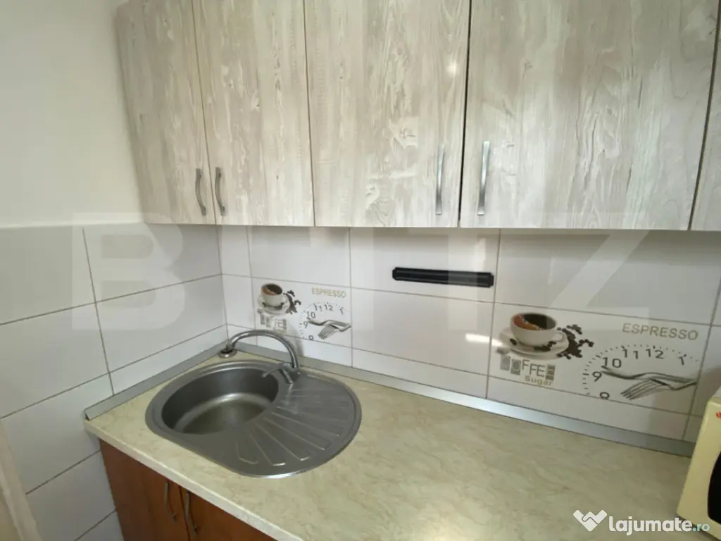 Blitz vă propune spre închiriere o garsonieră cochetă, situată la etajul 3 din 4 din zona străzii Meteorologiei, aproape de mijloacele de transport în comun, avand in apropiere magazin alimentar. Compartimentare: Dormitor luminos, bucătărie separata, baie Dotări: Geamuri termopan cu tâmplărie PVC Încălzire centrala termica Apartamentul se ofera spre inchiriere complet mobilat si utilat Te asteptam la vizionare! Disponibila din 01.02.2026 Cod ofertă / ID BLITZ: P152209 Id intern: P152209 Confort: 1 Tip imobil: Bloc de apartamente