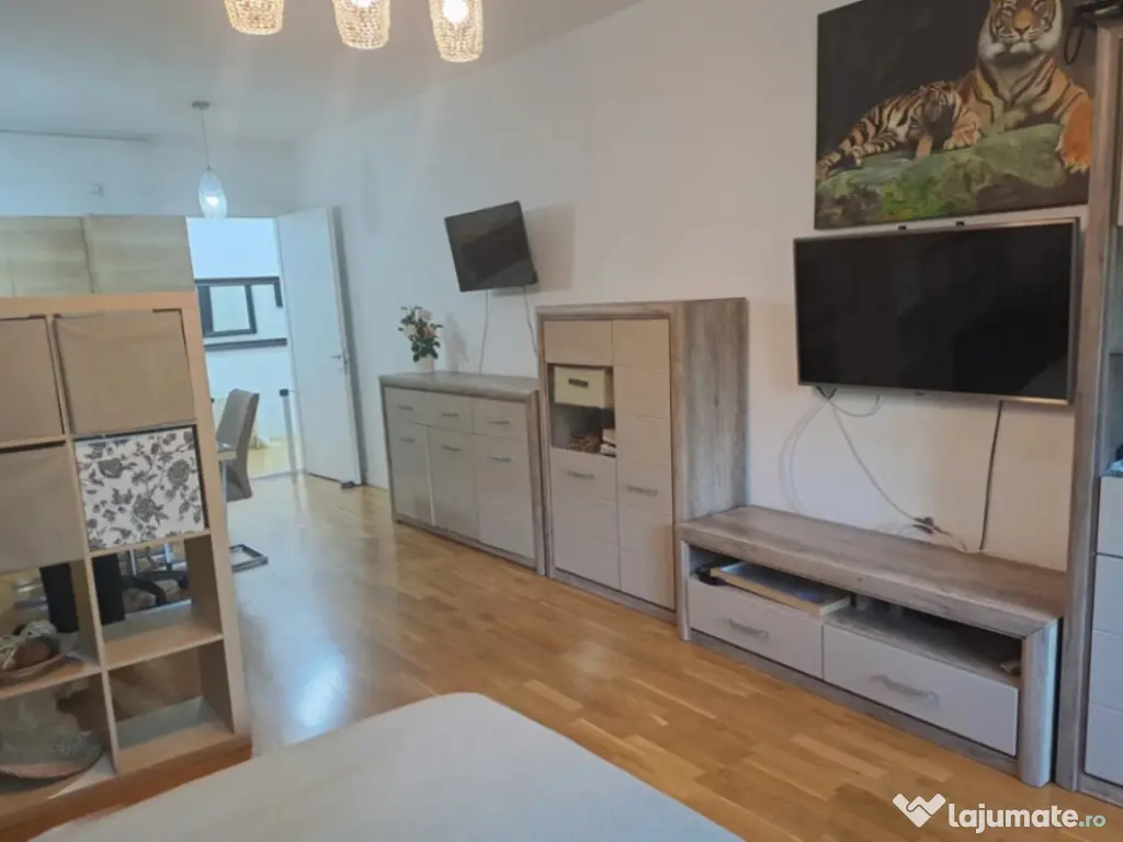 DESTINE IMOBILIARE prezintă spre ÎNCHIRIERE: Studio situat în zona Iancu Nicolae – Residence 5, într-un complex rezidențial modern, amplasat la aproximativ 200 m de Pădurea Băneasa. Proprietatea beneficiază de pază permanentă, supraveghere video și spațiu de joacă pentru copii. Informații utile: Suprafață utilă: 42 mp Suprafață totală: 63 mp Terasă: 10 mp Compartimentare: studio Orientare: Est Disponibilitate: imediată Loc de parcare: subteran, inclus Dotări și finisaje: Mobilat și utilat complet Centrală termică Buderus Aer condiționat Hitachi 2 televizoare Mașină de spălat rufe Mașină de spălat vase Frigider Ferestre tripan Compartimentări interioare din cărămidă, cu izolație termică și fonică Terasă cu vedere liberă către grădină Facilități complex: Pază 24/7 Supraveghere video Spațiu de joacă pentru copii Acces rapid către Pădurea Băneasa Condiții: Plată 12 luni în avans, ulterior plată lunară Contract pe termen lung (2–3 ani) Proprietatea se predă proaspăt zugrăvită, cu saltea nouă Pentru detalii suplimentare și programarea unei vizionări, vă stăm la dispoziție. Comision agenție: 50% + TVA din prima lună de chirie. Plesnila Rares Matei : 0723 348 602 COD OFERTA: P4888 Id intern: P4888 Confort: 1 Tip imobil: Bloc de apartamente Comision cumpărător: 50%